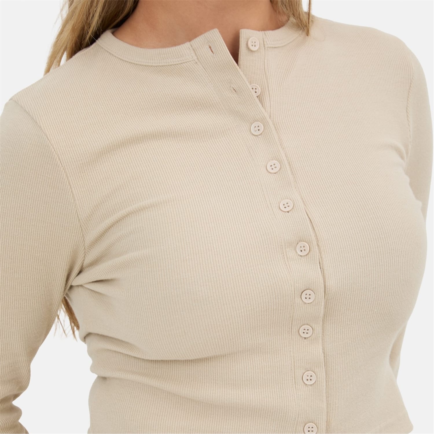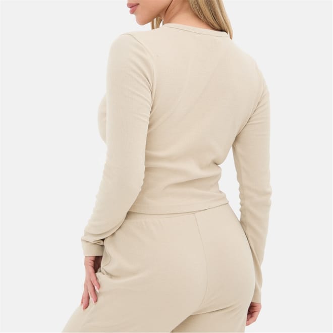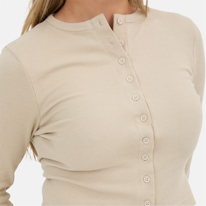A versatile staple with subtle texture, this ribbed button front long sleeve top blends comfort and style effortlessly. Made from soft, stretch ribbed fabric, it contours to the body for a flattering, close-to-skin fit.