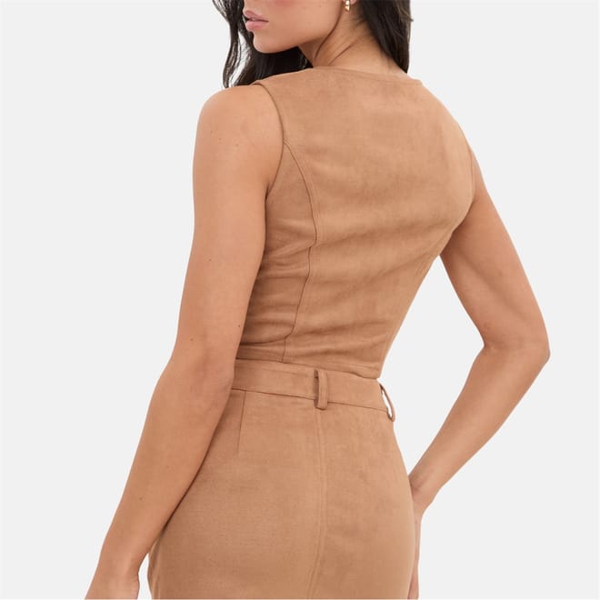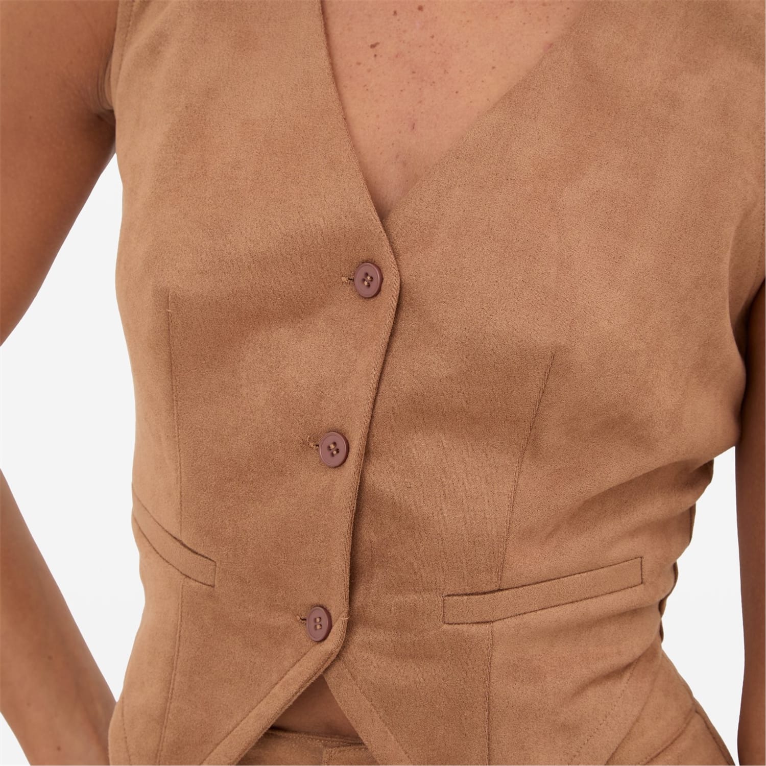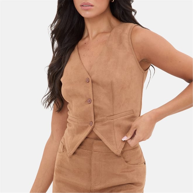 Add texture and edge to your outfit with this faux suede waistcoat. Crafted from soft, suede-like fabric, it offers the rich look of real suede with easy care and durability. Perfect for adding a touch of rugged sophistication to both casual and dressier ensembles.