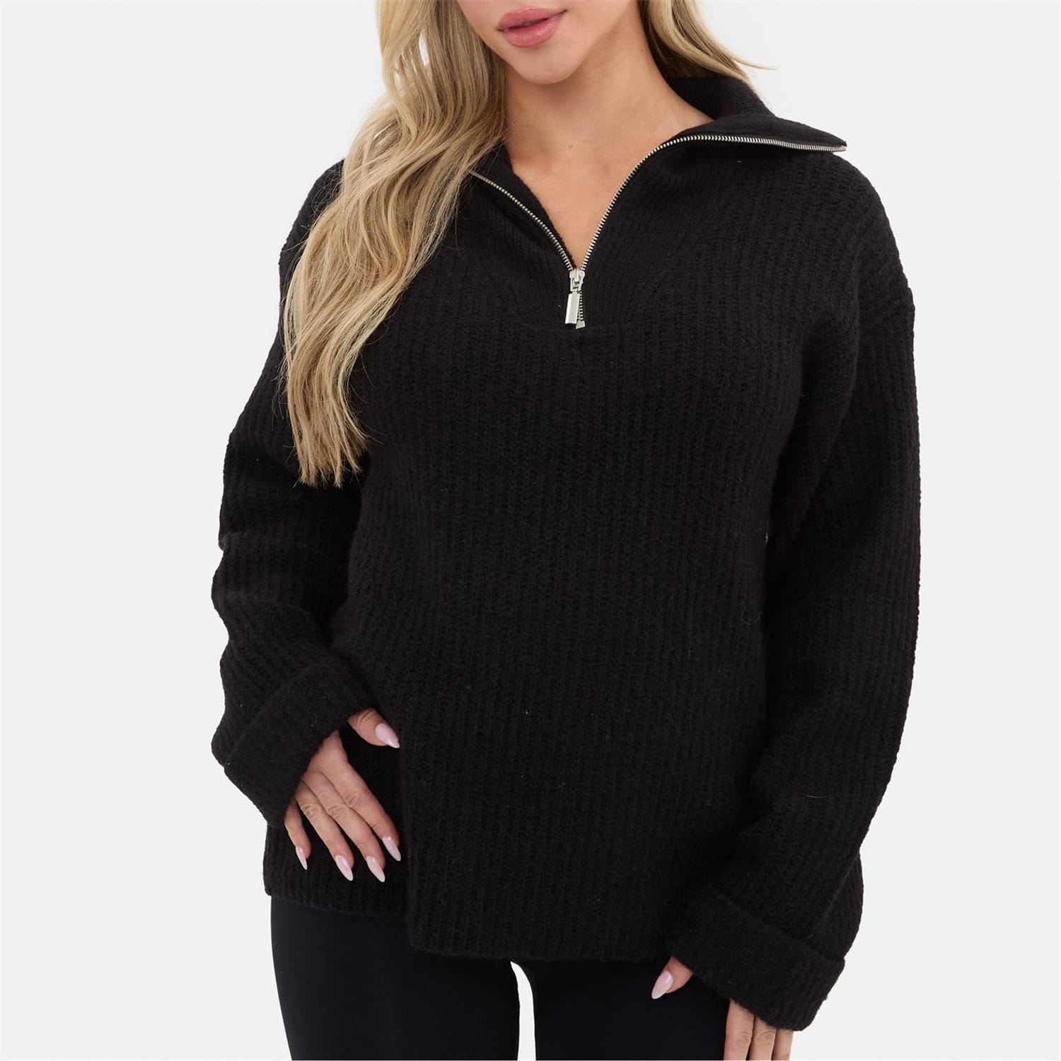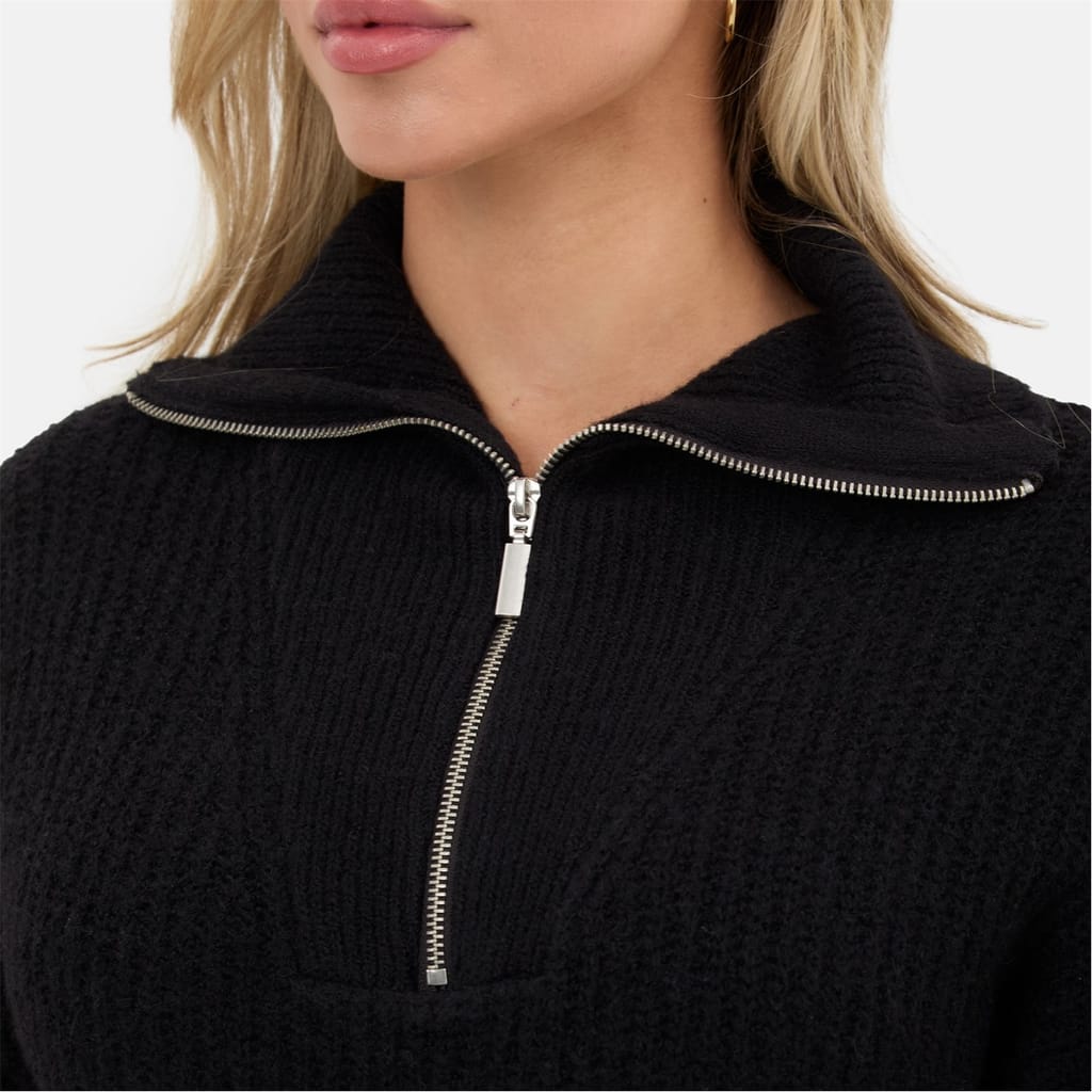 A versatile layering essential, this zip neck jumper combines comfort with a contemporary edge. Knitted in a soft, mid-weight yarn, it features a high collar with a half-zip detail for adjustable styling — wear it zipped up for a sleek look or open for a more relaxed feel. -