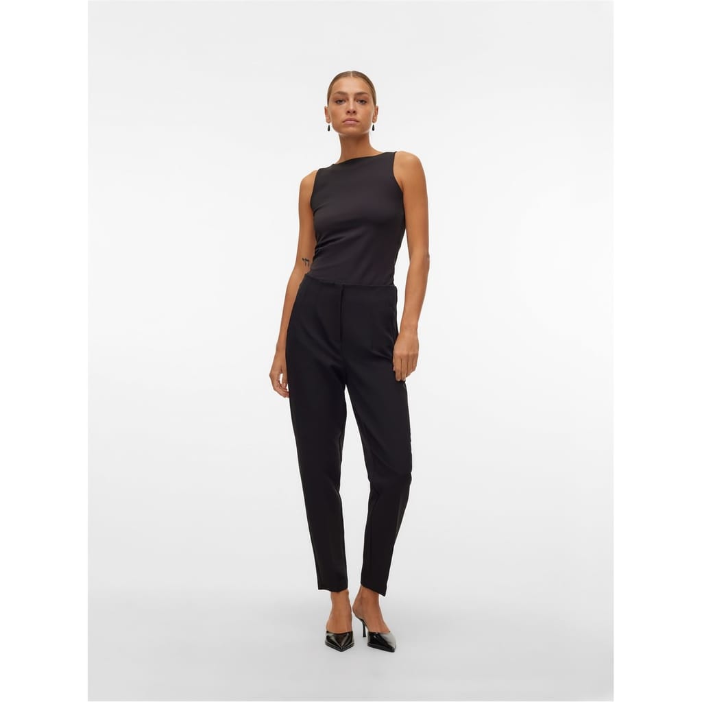 Vero Moda trousers offer a stylish and practical choice for your wardrobe. Featuring a zip fly and button closure, these pants are designed for ease and comfort. The addition of pockets enhances their functionality, making them a versatile option for various occasions. -