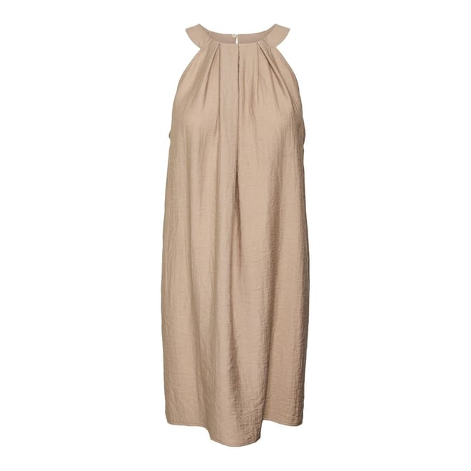 This Vero Moda shift dress is a stylish midi-length piece featuring a halter neck and a straight hem. Its solid pattern offers a sleek and modern look, perfect for various occasions. -