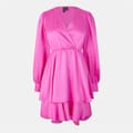 This Vero Moda mini wrap dress features a v-neck and long puff sleeves, offering a stylish silhouette. The solid pattern and ruffle hem add a touch of elegance, making it a versatile choice for various occasions. -