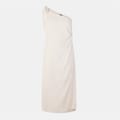 This Vero Moda midi dress features a one-shoulder neckline and a slim fit, creating an elegant silhouette. The solid pattern and ruched embellishments add a touch of sophistication, while the straight hem completes the a-line style. Perfect for those seeking a chic and modern look. -
