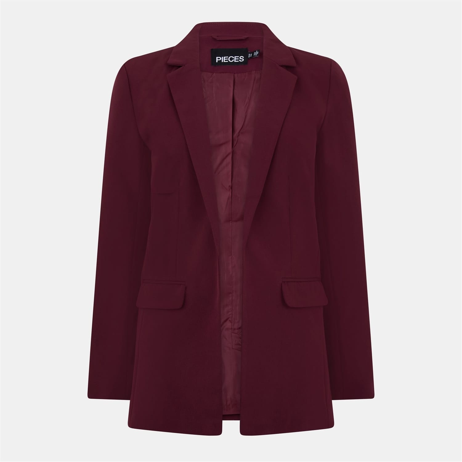 The Pieces blazer from the workwear collection is a sophisticated choice for professional settings. Featuring a lapel collar and an open front, this solid jacket offers a regular fit with a straight hem. Practical pockets add functionality to its sleek design, making it a versatile addition to your wardrobe. -
