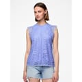 This Pieces top features a high neck and a sleeveless design with ruffle sleeves, offering a regular fit. The floral pattern is beautifully complemented by delicate lace detailing, adding a touch of elegance to the overall look. -