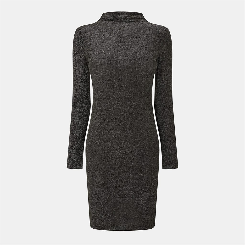 This Pieces mini dress is a striking choice with its metallic pattern and bodycon style. Featuring a high neck and long sleeves, it offers a slim fit that accentuates the silhouette. The straight hemline adds a touch of elegance, making it a versatile addition to any wardrobe. -