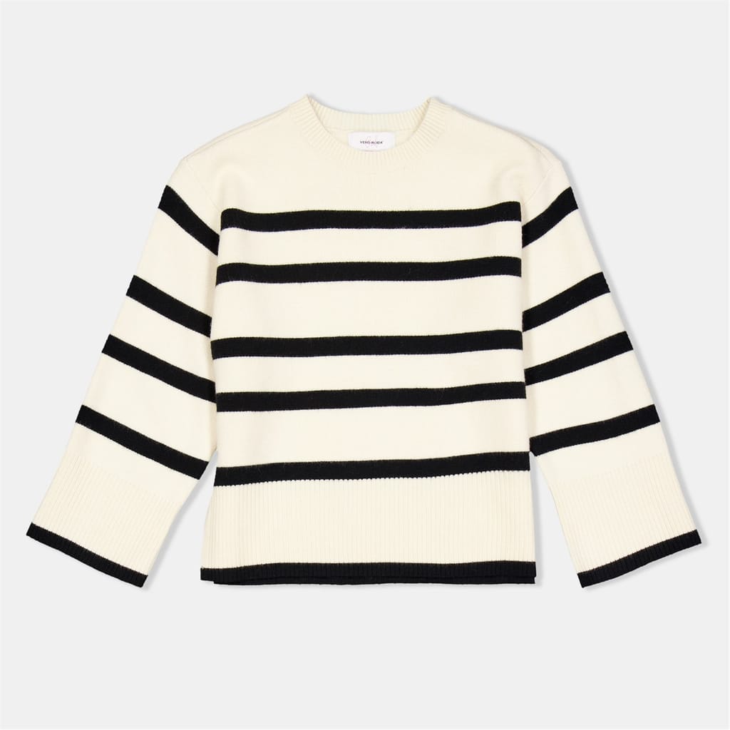 This Vero Moda top features a stylish stripe pattern and long sleeves. Designed with a crew neck and regular fit, it offers a comfortable and classic look. The ribbed cuff and ribbed detail add a touch of texture to this versatile piece. -