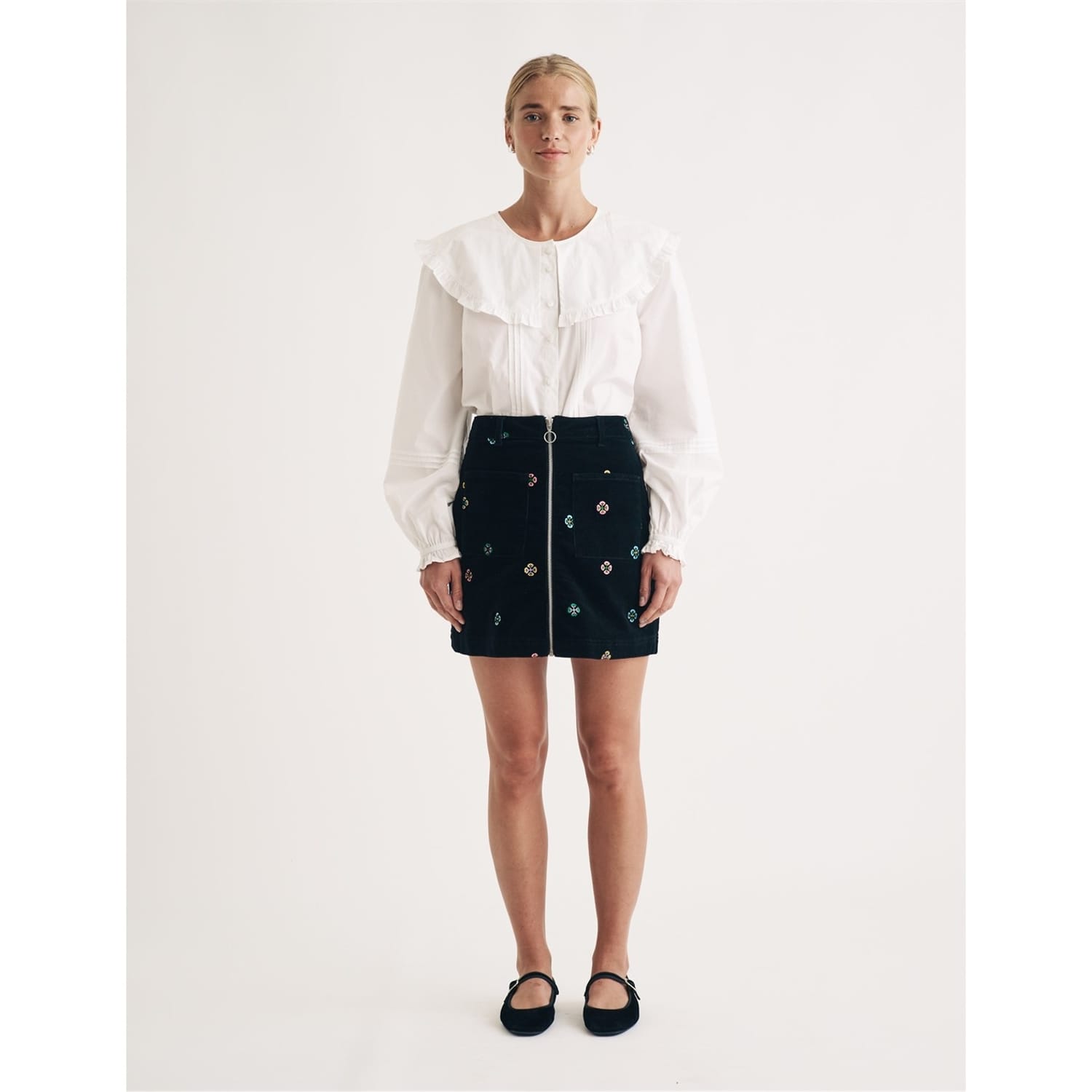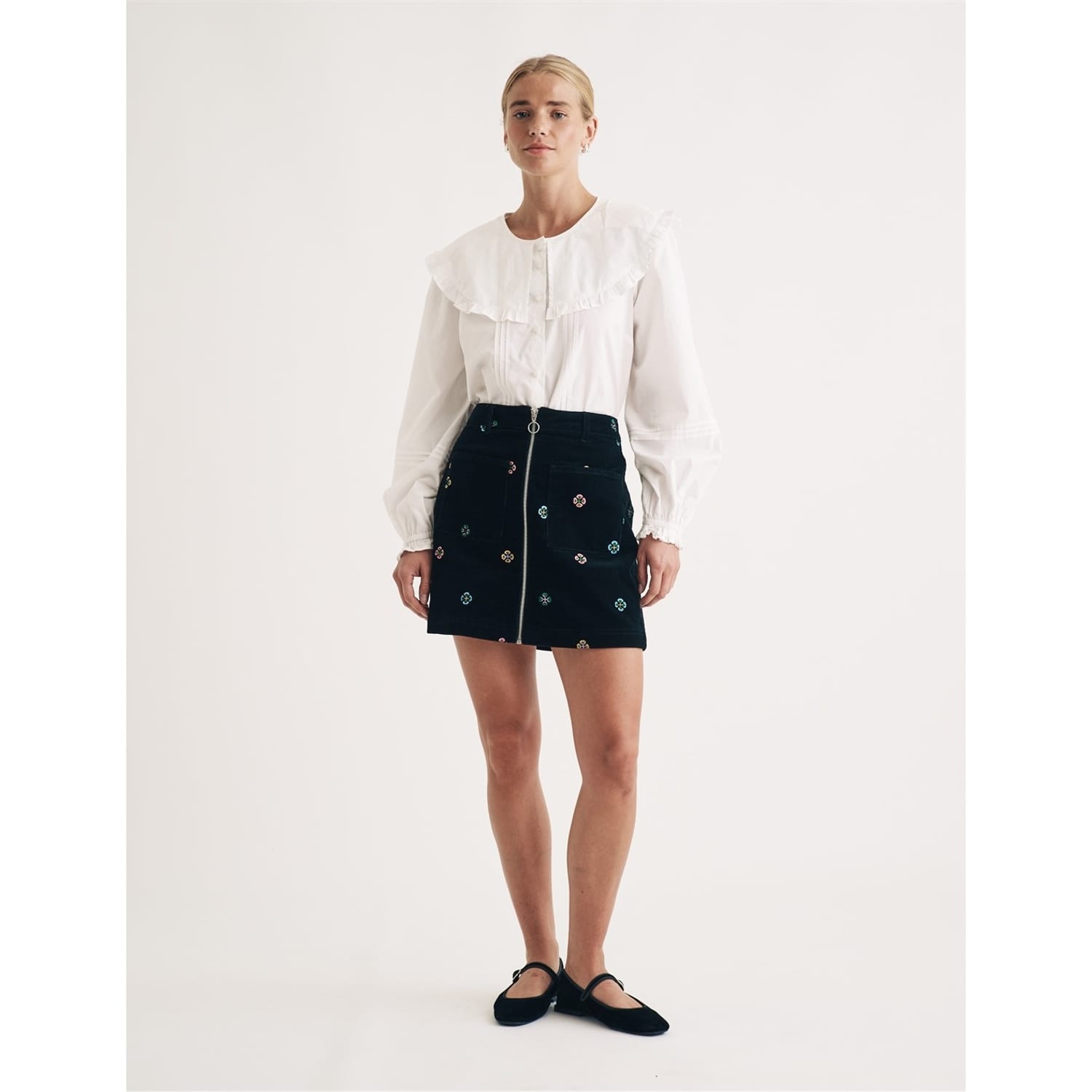 Discover the charm of the Nobody's Child mini skirt, a perfect addition to your casual collection. This A-line skirt features a delightful floral pattern, enhanced with embroidered details and practical pockets. Designed with a regular fit and a convenient zipper closure, it offers both style and functionality for any occasion. -