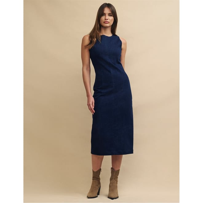 Discover the elegance of the midi bodycon dress from Nobody's Child. This solid-coloured piece offers a slim fit, perfect for a sleek silhouette. Its sleeveless design enhances its modern appeal, making it a versatile addition to any wardrobe. -