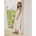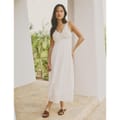 This midi slip dress from nobodys_child features a v-neck and spaghetti straps, offering a sleek silhouette. The solid pattern is complemented by intricate crochet detailing, adding a touch of elegance. The straight hemline completes the look, making it a versatile addition to any wardrobe. -