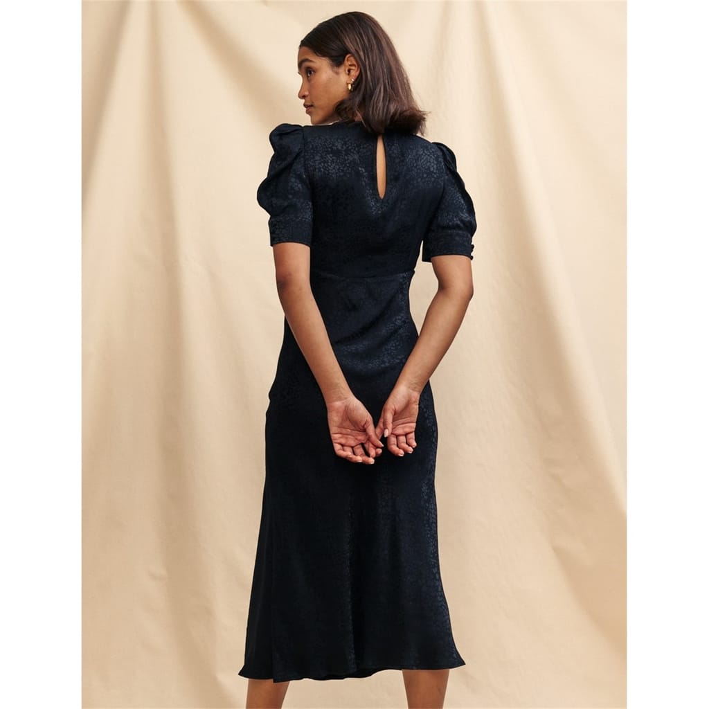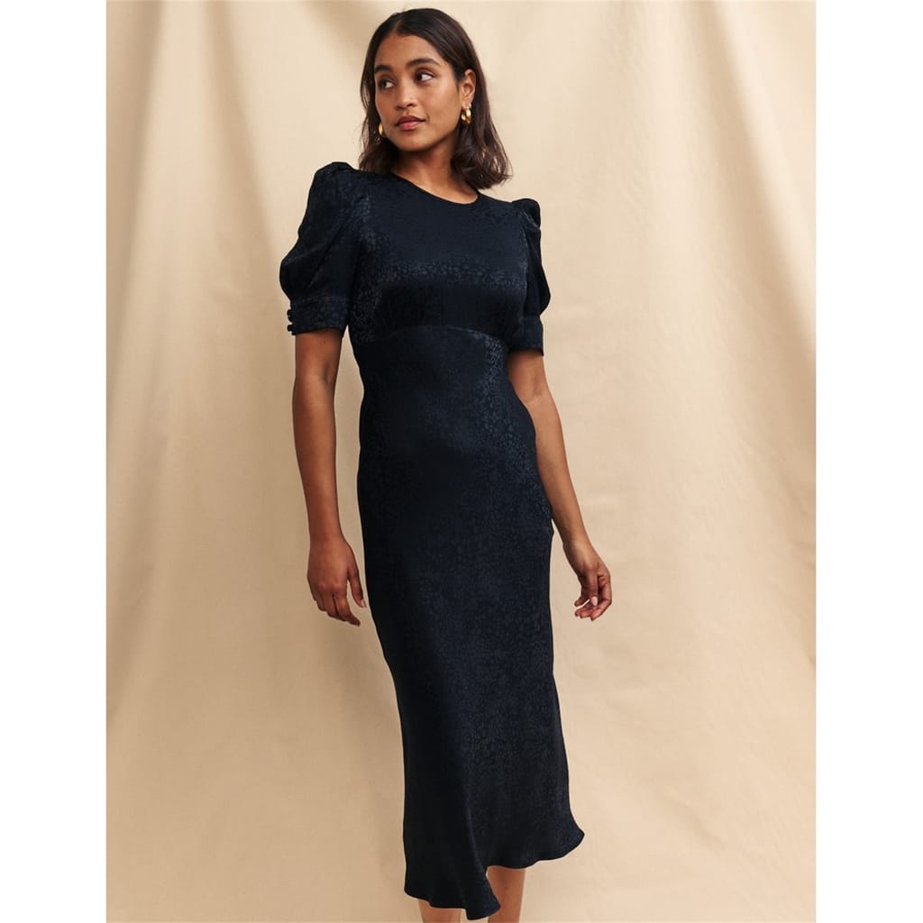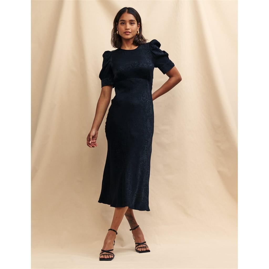 This midi dress from Nobody's Child features a charming floral pattern, perfect for a stylish look. The slip style is complemented by a crew neck and puff sleeves, offering a unique touch. Designed with a slim fit, this dress is ideal for those who appreciate both comfort and elegance. -