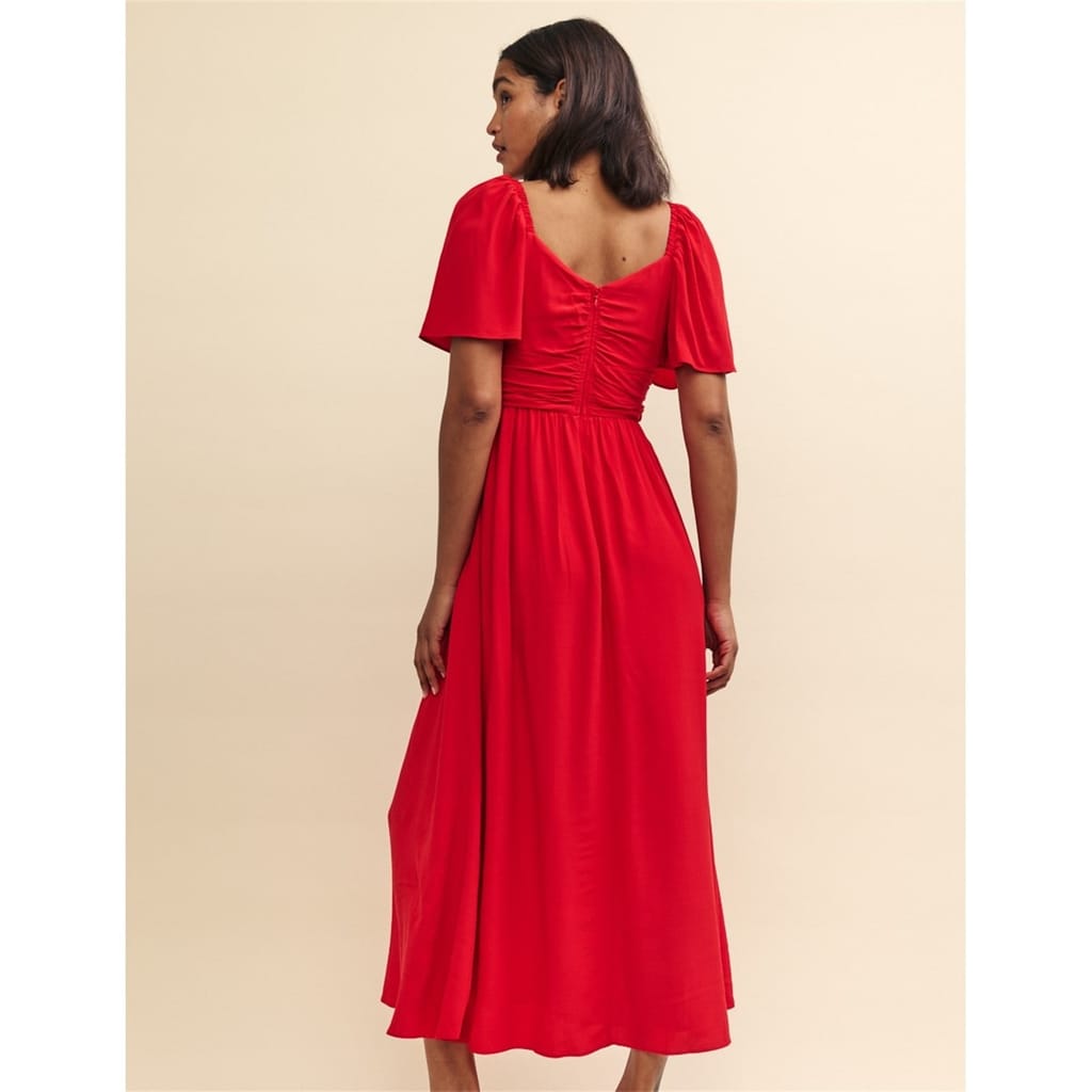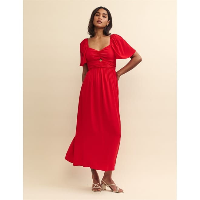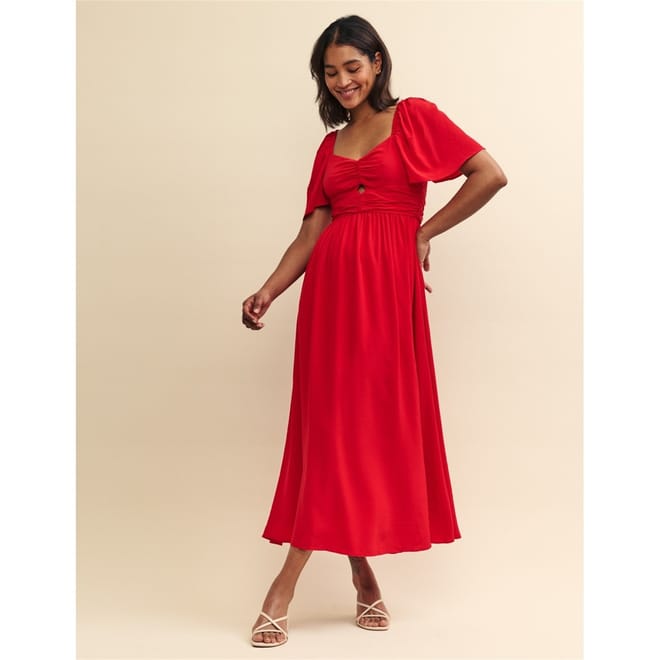 This midi dress from Nobody's Child features a sweetheart neckline and puff sleeves, offering a charming silhouette. The regular fit ensures comfort, while the solid pattern and cut-out embellishments add a touch of elegance. Perfect for various occasions, this dress combines style and sophistication effortlessly. -