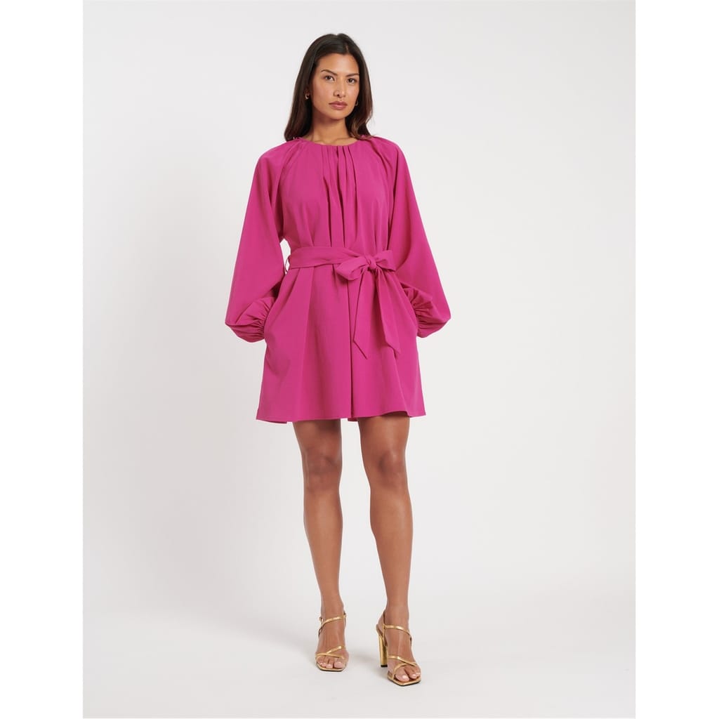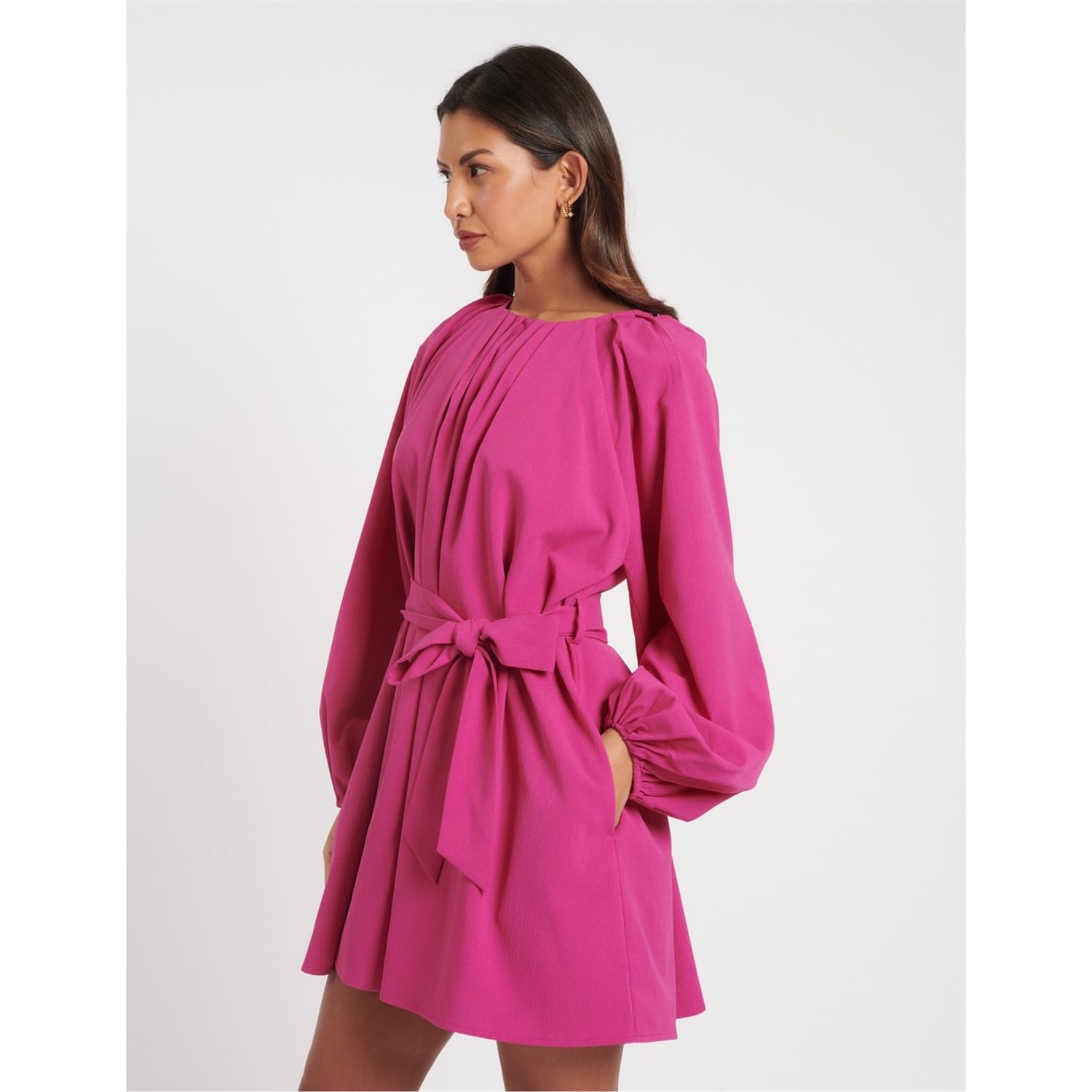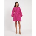 Discover the charm of the Nobody's Child mini dress, designed in an A-line style with a solid pattern. This dress features a crew neck and long balloon sleeves, offering a unique silhouette. The straight hem and tie waist closure add a touch of elegance, while the practical pocket embellishment enhances functionality. Perfect for those seeking a blend of style and practicality. -