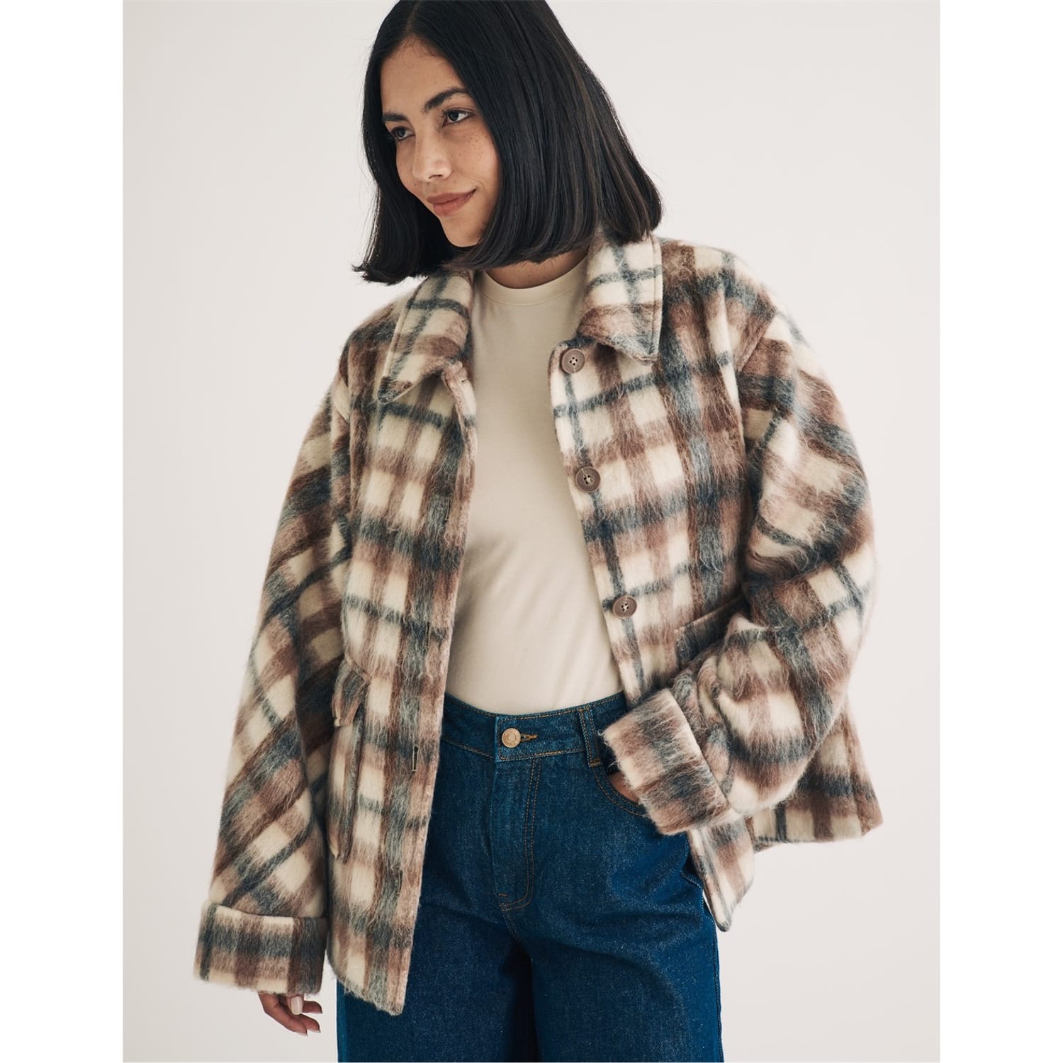 This relaxed fit top from Nobody's Child features a classic plaid pattern and a shirt collar. Designed with long sleeves and a button closure, it offers a timeless look. The addition of a pocket adds a practical touch to this stylish piece. -