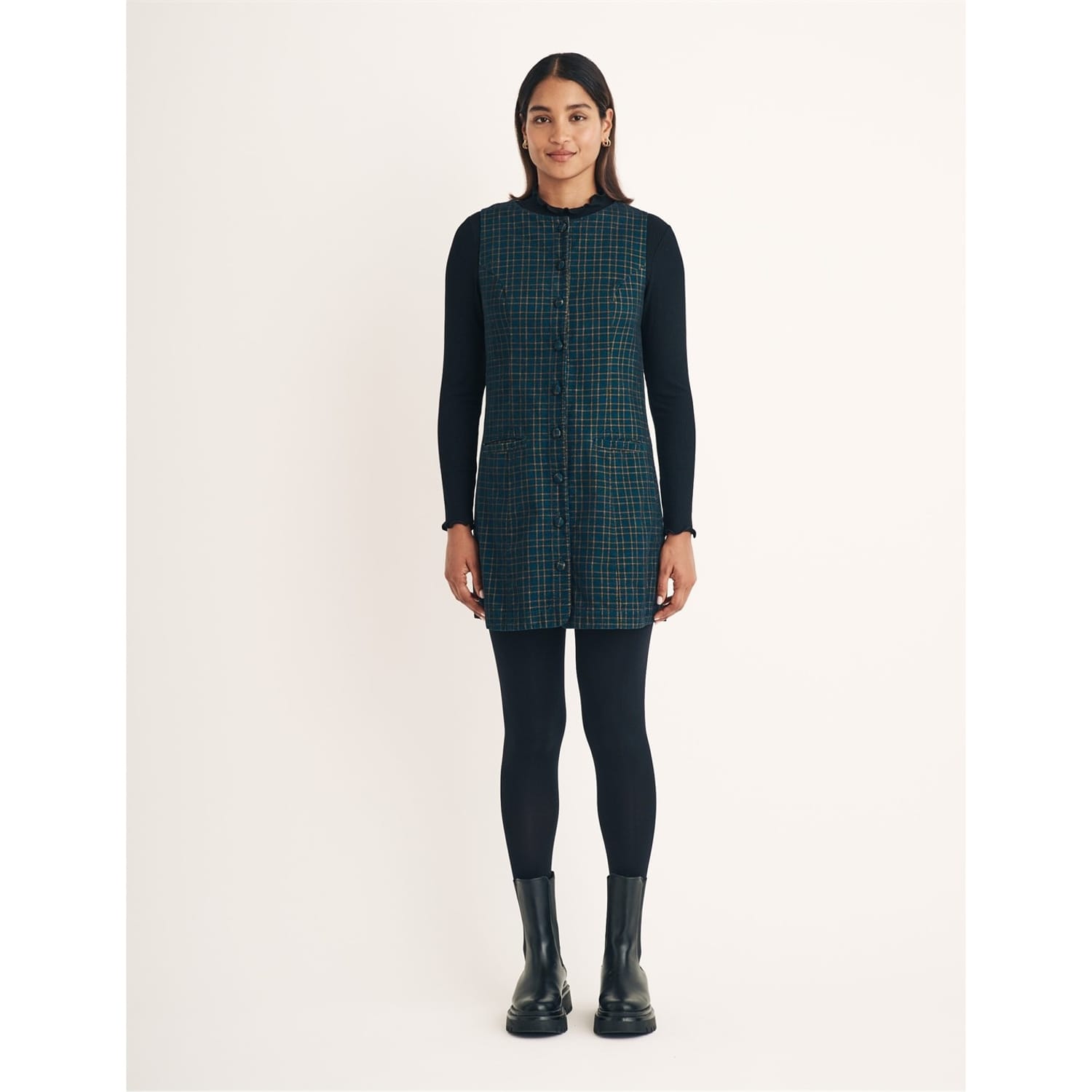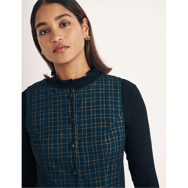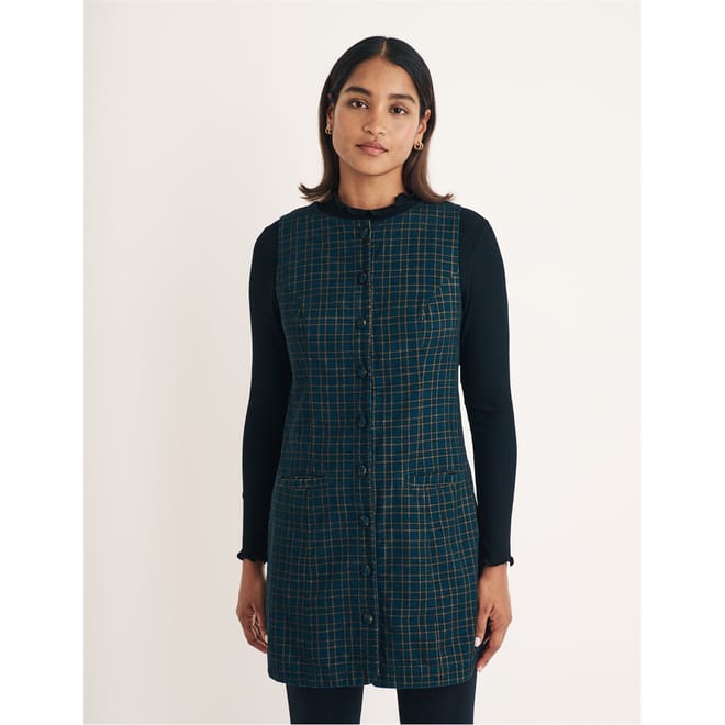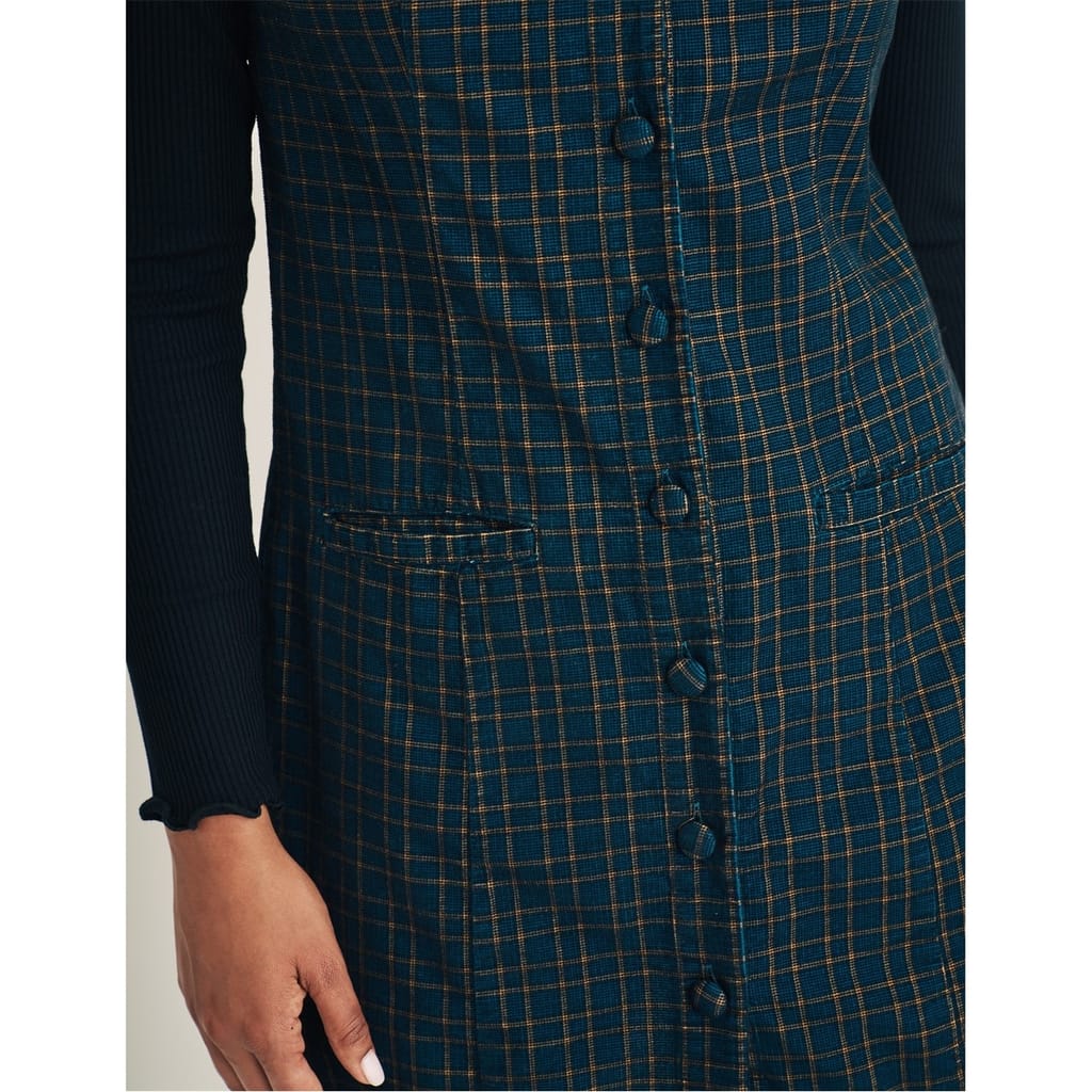 This mini dress from Nobody's Child features a classic plaid pattern and a crew neck. Designed in an A-line style, it offers a regular fit with a straight hem. The dress is detailed with a button closure and practical pockets, making it a versatile addition to your wardrobe. -