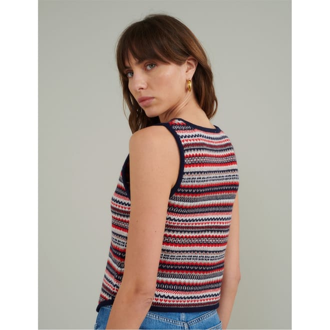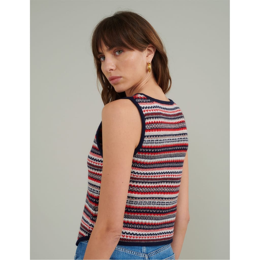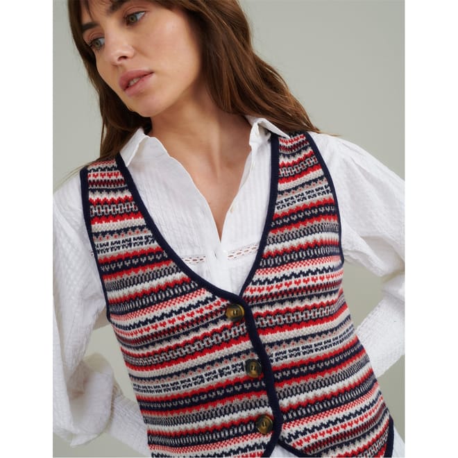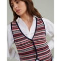This waistcoat from Nobody's Child features a charming fair isle pattern, adding a touch of classic style to your wardrobe. The short design is complemented by a button closure, offering a sleek and tailored look. Perfect for layering, this piece is a versatile addition to any collection. -