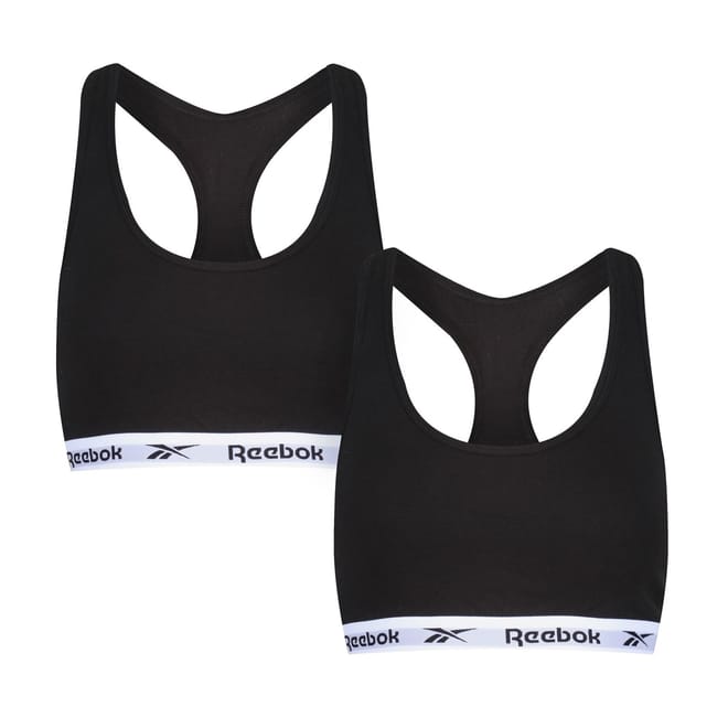 Stay comfortable and supported with the Reebok 2-Pack cotton crop tops, perfect for layering, lounging, or light workouts. Made from soft, breathable cotton with added stretch, these cropped bralettes feature a signature Reebok elastic band for a secure fit and sporty edge. Designed for everyday wear, they offer light support with a smooth, flattering finish.