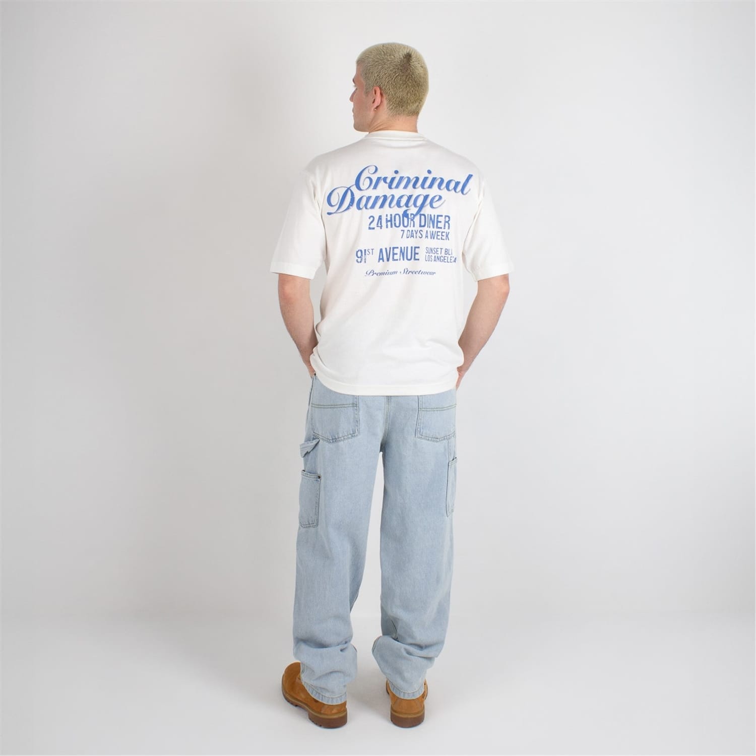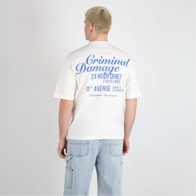 This Criminal Damage top features an oversized fit, perfect for a casual look. It comes with a crew neck and short sleeves, adorned with a striking graphic print. The design includes logo embellishments and text graphics, adding a unique touch to your wardrobe. -