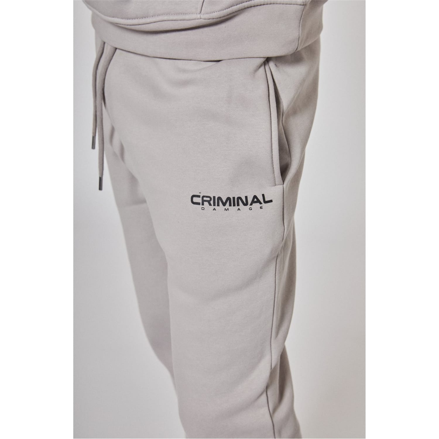 Criminal Damage joggers are designed for running enthusiasts. Featuring a drawstring closure and regular fit, these joggers offer comfort and style. The design includes a logo and side pocket, complemented by lettering graphics, making them a practical choice for active wear. -