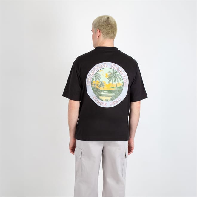 The Criminal Damage Lucia top is a casual piece featuring an oversize fit and short sleeves. It showcases a crew neck and a striking graphic print, complemented by a logo embellishment. Perfect for those seeking a relaxed yet stylish look. -