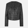 This Ted Baker jacket features a solid pattern with a regular fit and a short length. It is designed with a button closure and a straight hem. The jacket is embellished with pockets and stitching, adding a touch of detail to its classic design. -