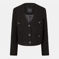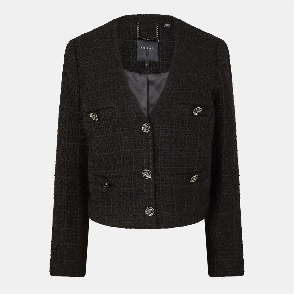Discover the Ted Baker hybrid jacket, a versatile piece with a solid pattern and regular fit. This short jacket features a straight hem and button closure, offering practicality with its pocket embellishments. Ideal for those seeking a blend of style and functionality. -