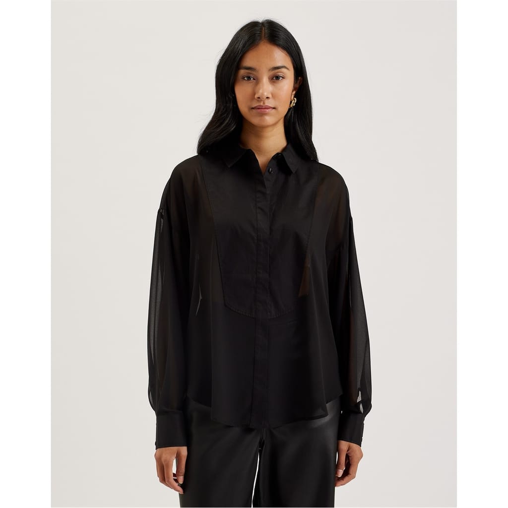 Made with flowing fabric, Ted Baker's Long-Sleeve Blouse features a bib detail with functional button closure.
