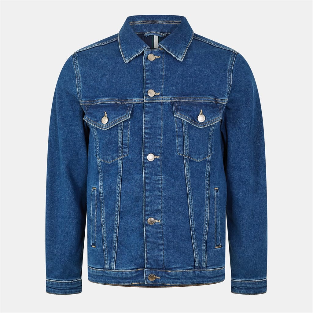 Discover the Ted Baker denim jacket, featuring a lapel collar and a straight hem. This regular fit piece is designed with a solid pattern and includes practical front pockets. The button closure adds a classic touch to this versatile wardrobe staple. -