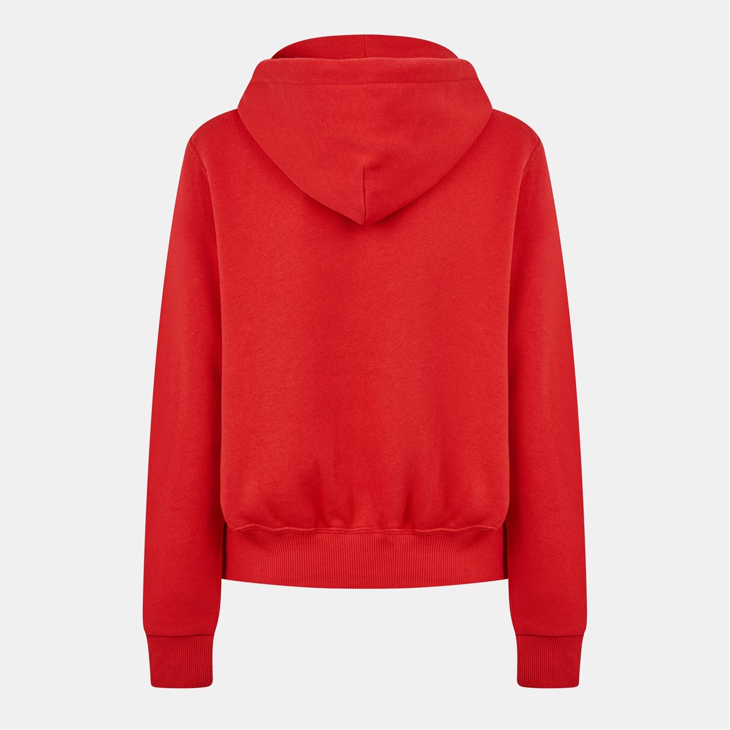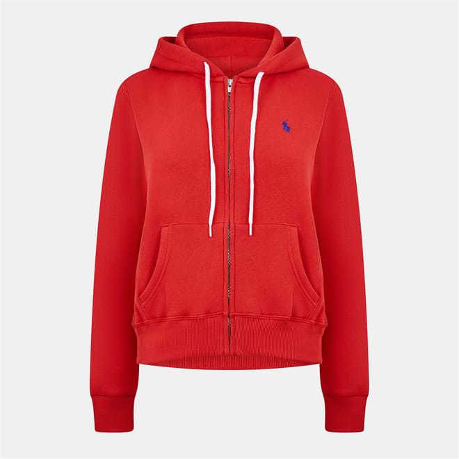 This Polo Ralph Lauren sweatshirt jacket features a hooded neckline and a full zipper closure. Designed with a regular fit, it includes ribbed cuffs and hem for added comfort. The solid pattern is complemented by a logo embellishment, offering a classic look. -