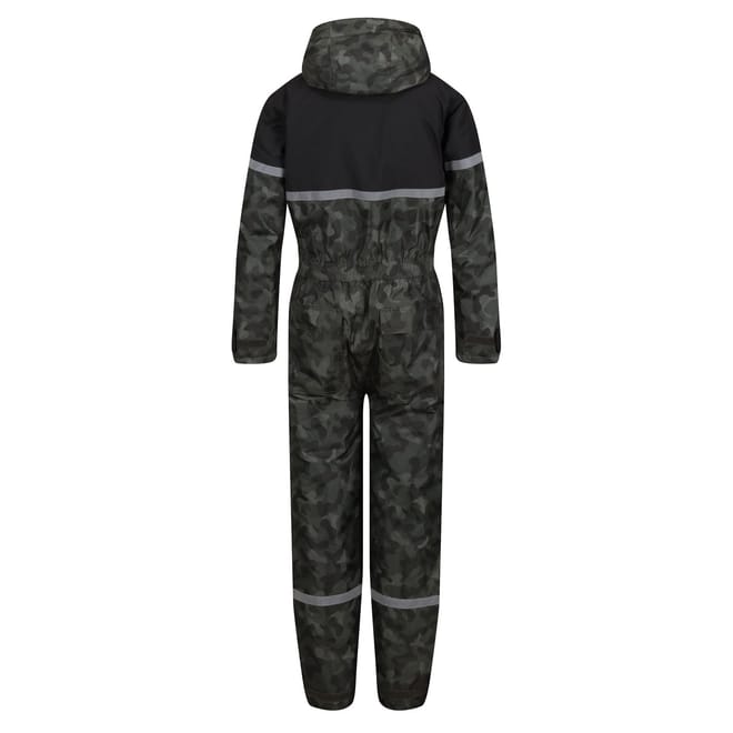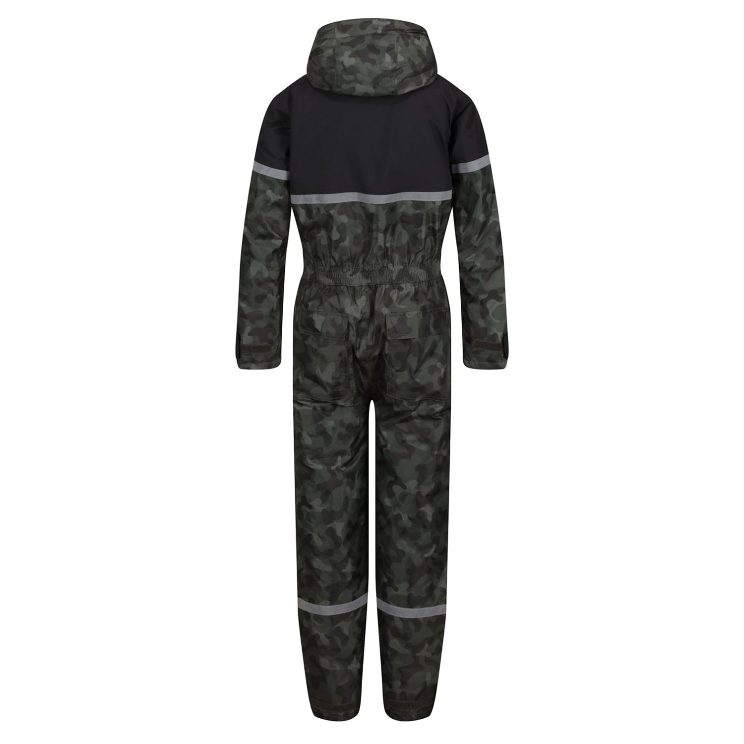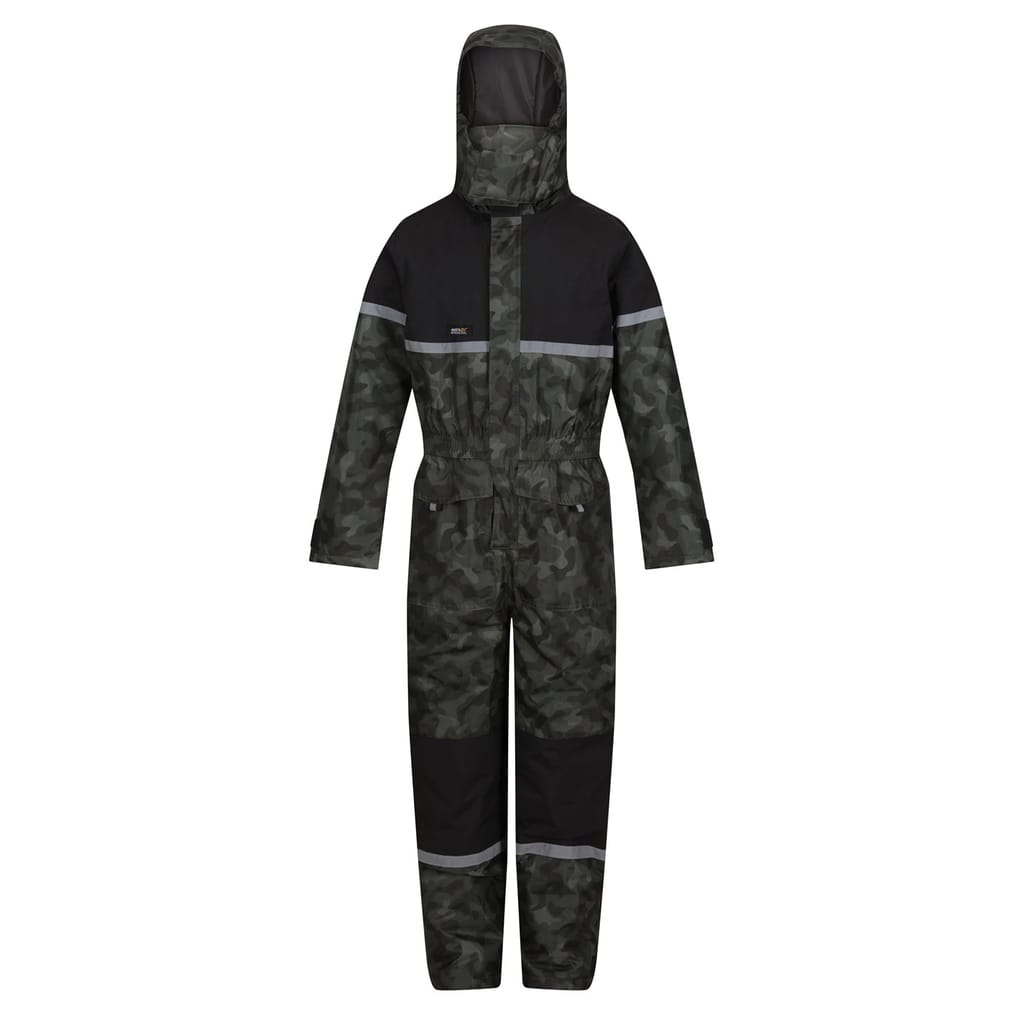 Stay dry and stylish with the Regatta hooded jacket. This water-repellent piece features a camo pattern and a convenient zipper closure. Designed with a regular fit, it includes practical pockets and reflective ribbon embellishments for added visibility. Perfect for those rainy days, this jacket combines functionality with a modern aesthetic. -