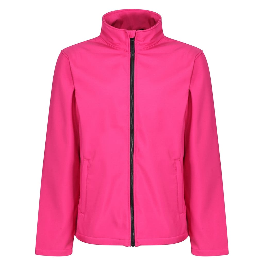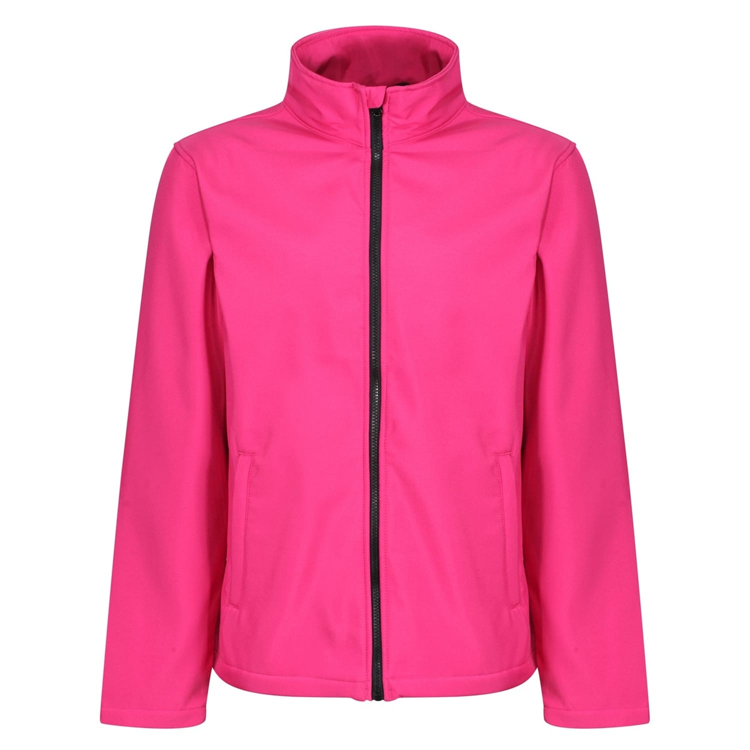 The Regatta softshell jacket features a high collar and a straight hem, offering a regular fit. It is designed with a solid pattern and includes a zipper closure. Practical pockets, including zipped pockets, add functionality to this versatile piece. -