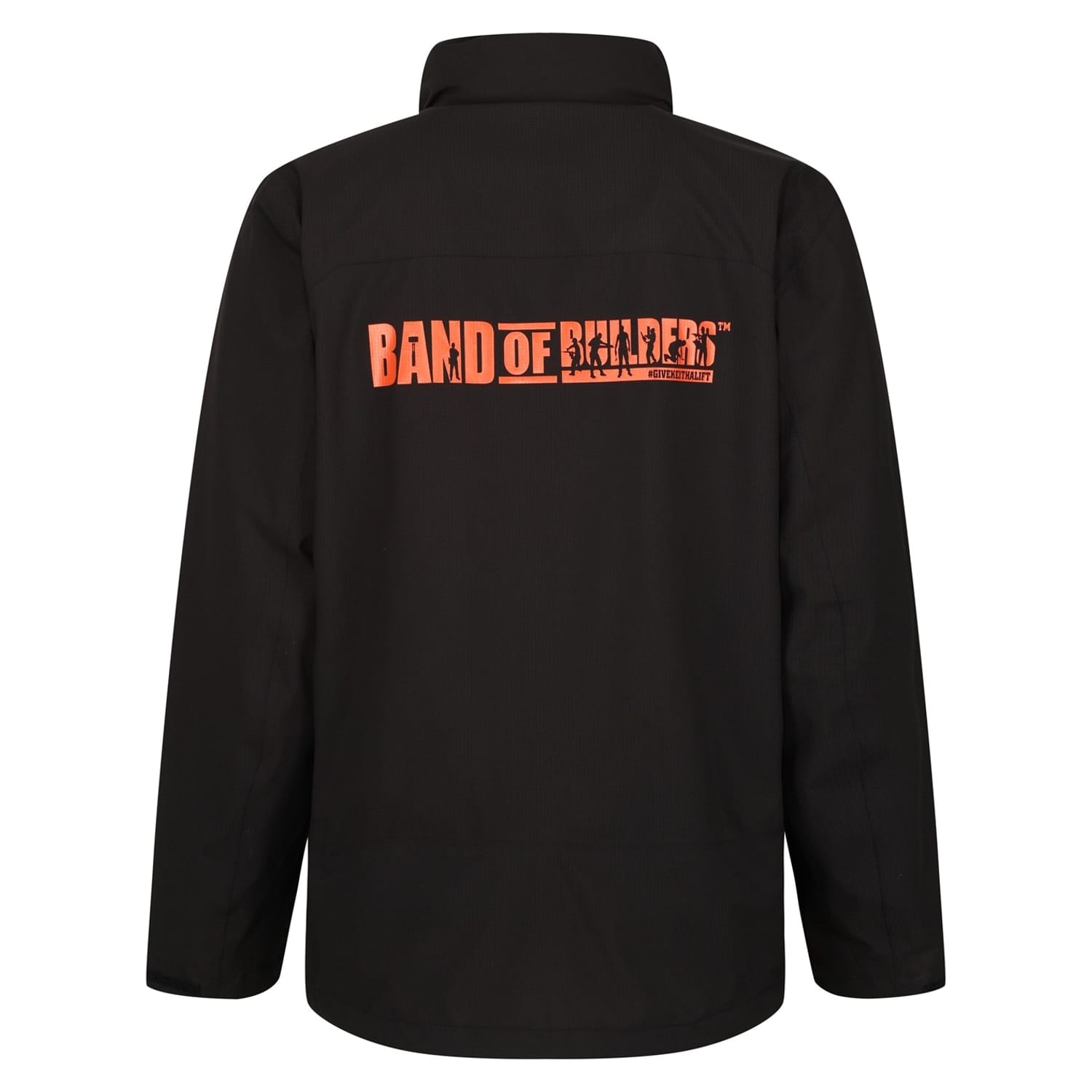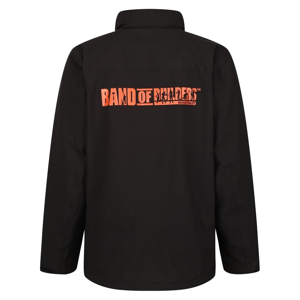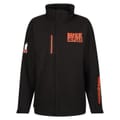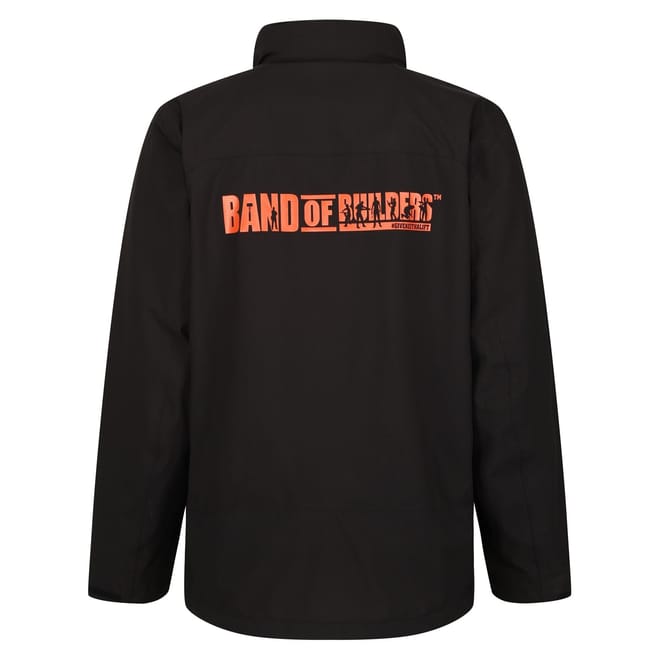 This Regatta softshell jacket features a high collar and a straight hem, offering a regular fit. It is designed with a solid pattern and includes a zipper closure. The jacket is embellished with a logo and pockets, complemented by lettering graphics for a stylish touch. -