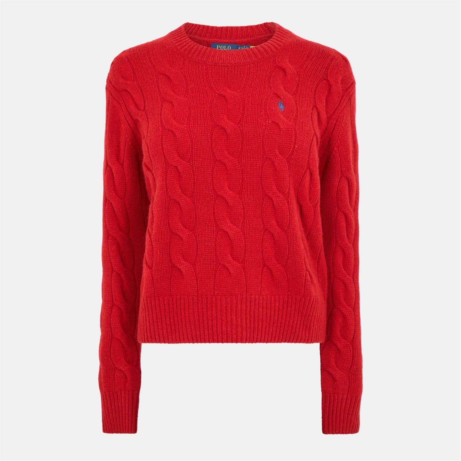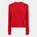 This Polo Ralph Lauren top is designed for winter with a cable knit pattern and features an embroidered embellishment. It has long sleeves with ribbed cuffs and a ribbed collar, offering a regular fit. The crew neck adds a classic touch to this elegant piece. -