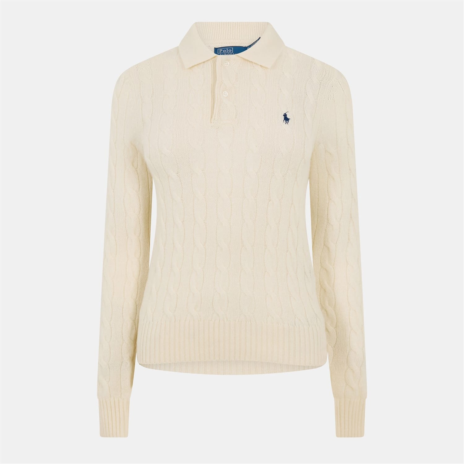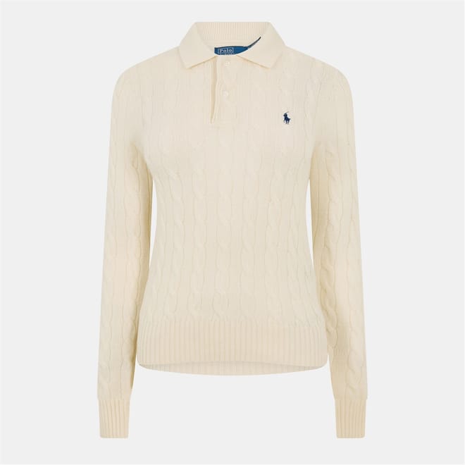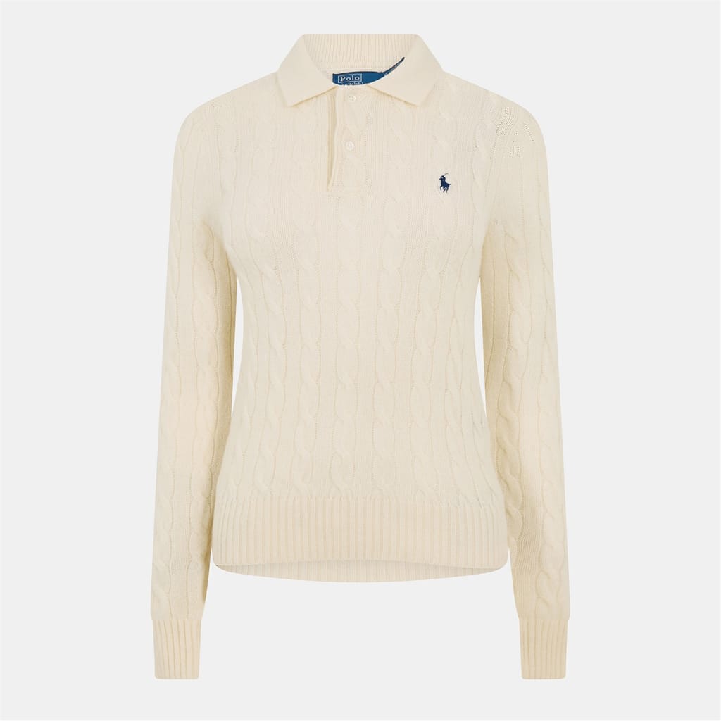 This Polo Ralph Lauren top features a classic polo collar and long sleeves with ribbed cuffs. The cable knit pattern adds a touch of texture, while the regular fit ensures comfort and style. -