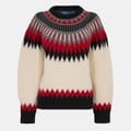 This Polo Ralph Lauren top features a classic Fair Isle pattern, perfect for the winter season. Designed with a crew neck and long sleeves, it offers a regular fit for comfortable wear. The ribbed collar and cuffs add a touch of detail to this timeless piece. -