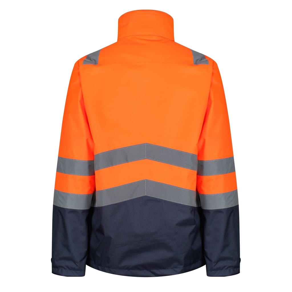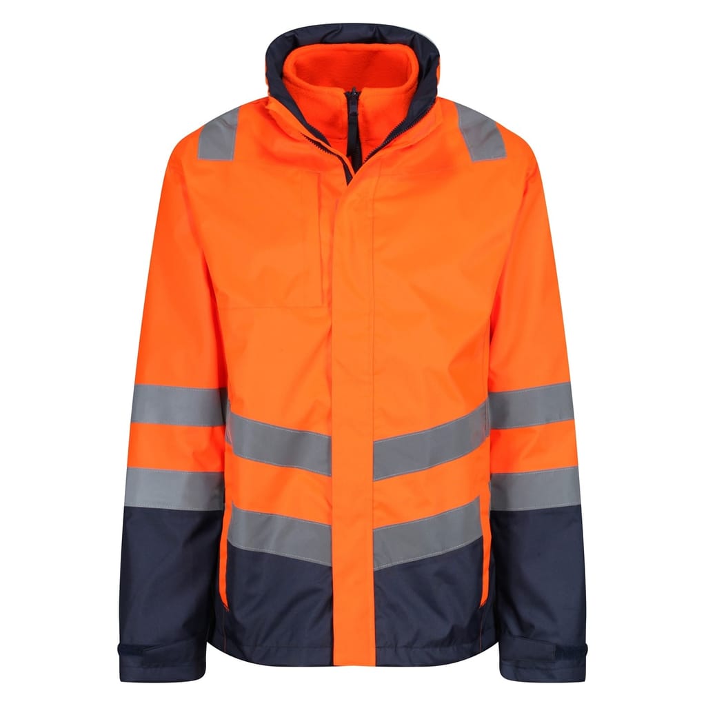 The Regatta jacket from the workwear collection features a high collar and a straight hem. Designed with a zipper closure, it offers a regular fit. The jacket is adorned with a reflective ribbon and showcases a colour block pattern, making it both functional and stylish for various work environments. -