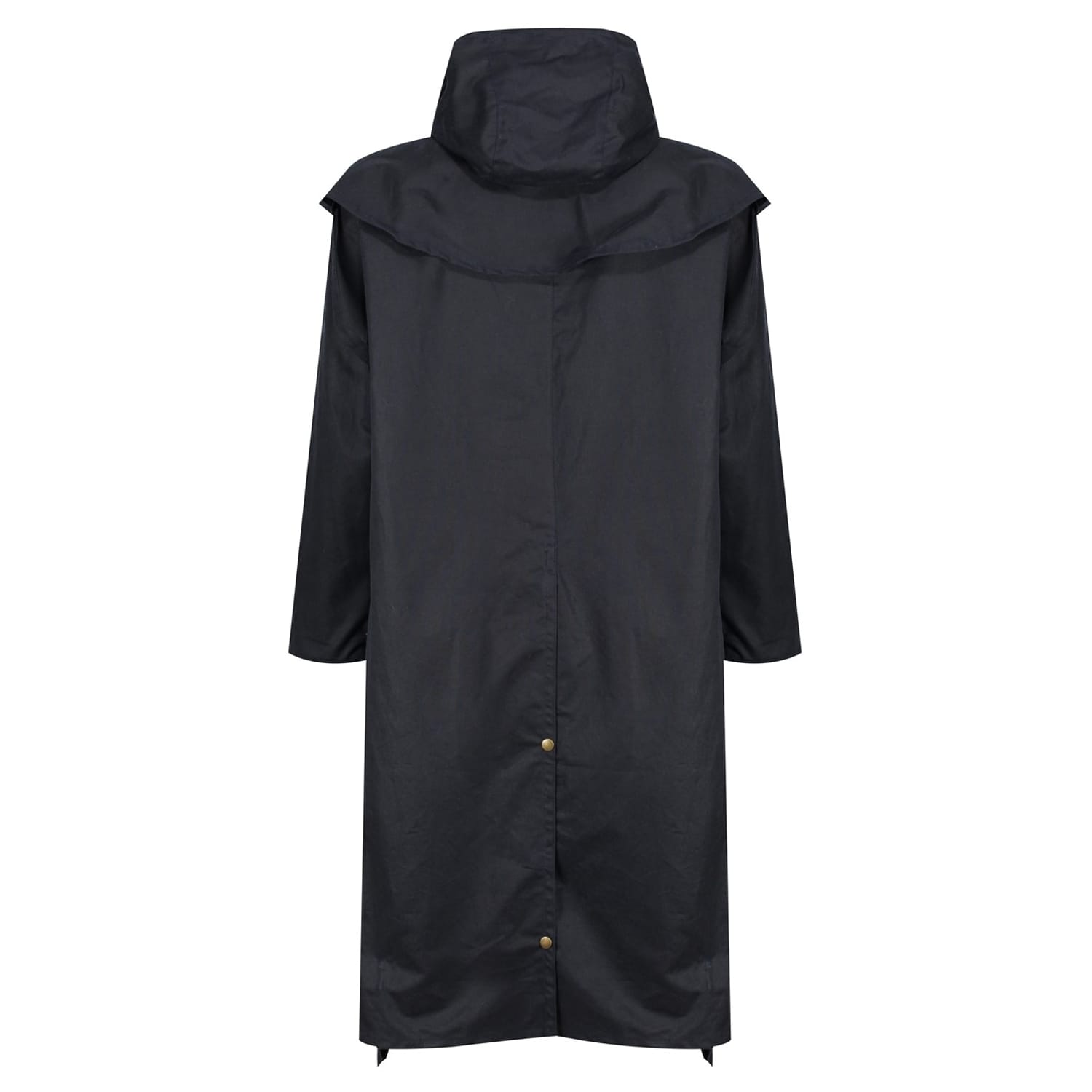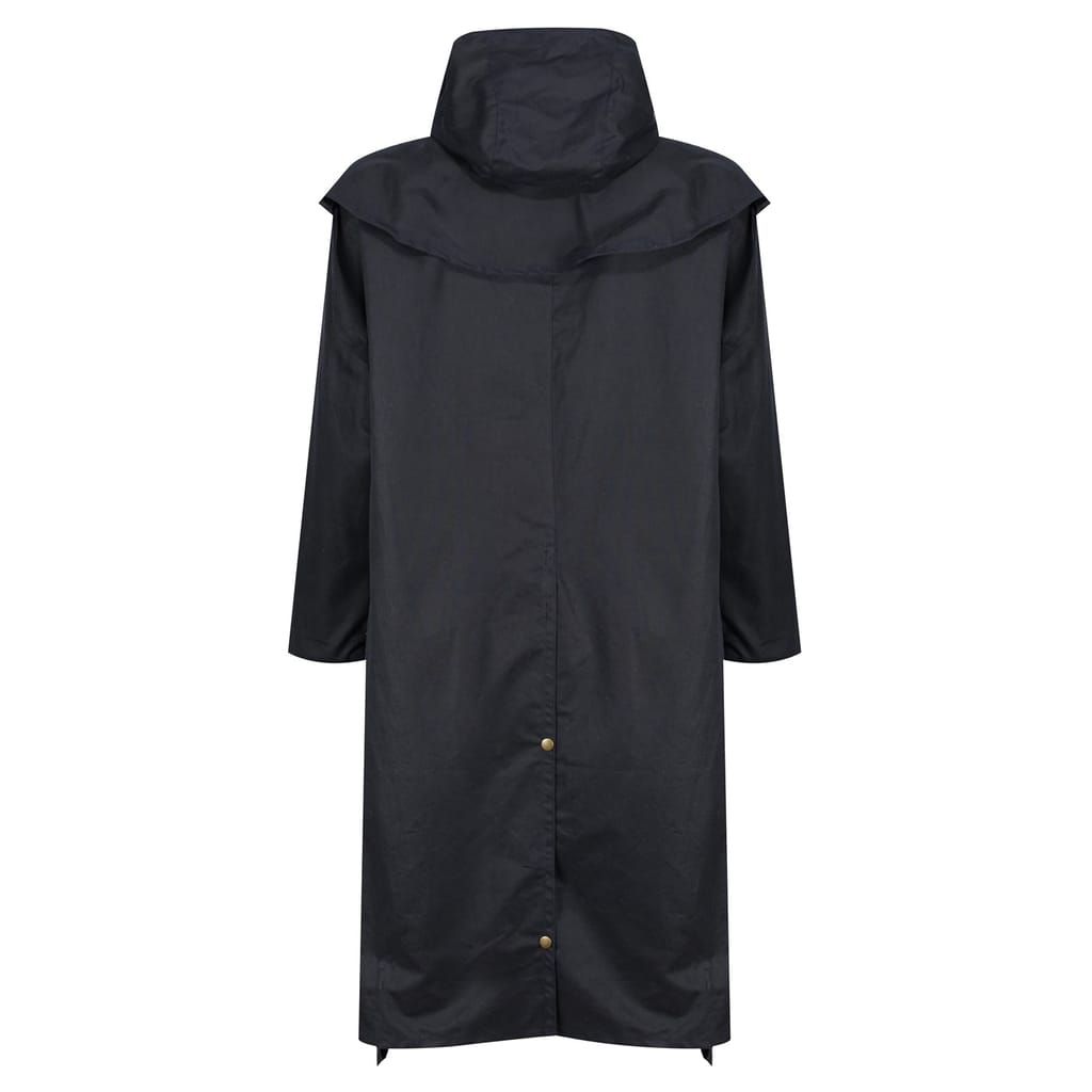 The Regatta waxed jacket features a hooded design and a snap button closure. It offers a relaxed fit with a solid pattern and a straight hem, making it a practical choice for outdoor activities. -