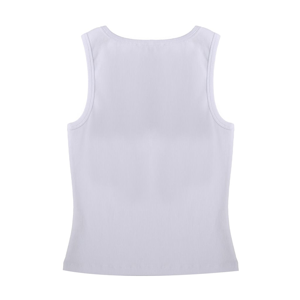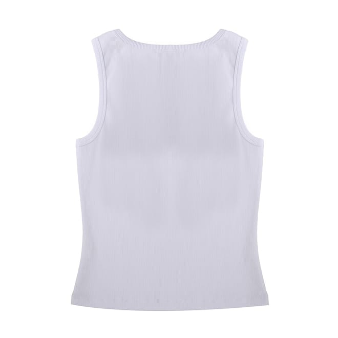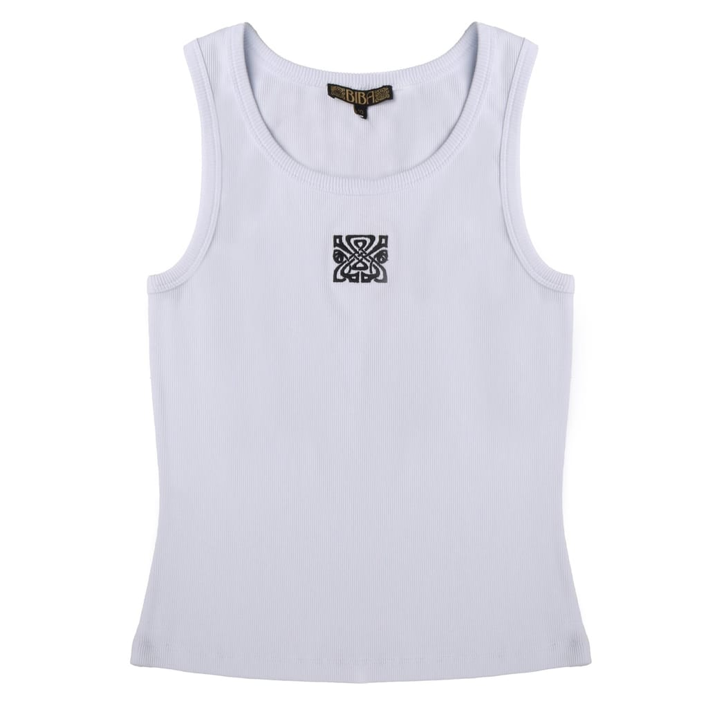 This Biba top is a casual essential, featuring a ribbed pattern and a scoop neck. The sleeveless design and slim fit offer a sleek silhouette, while the racerback adds a sporty touch. Embellished with a logo, this top combines style and comfort effortlessly. -
