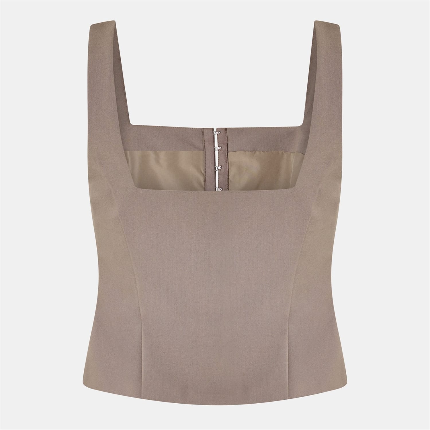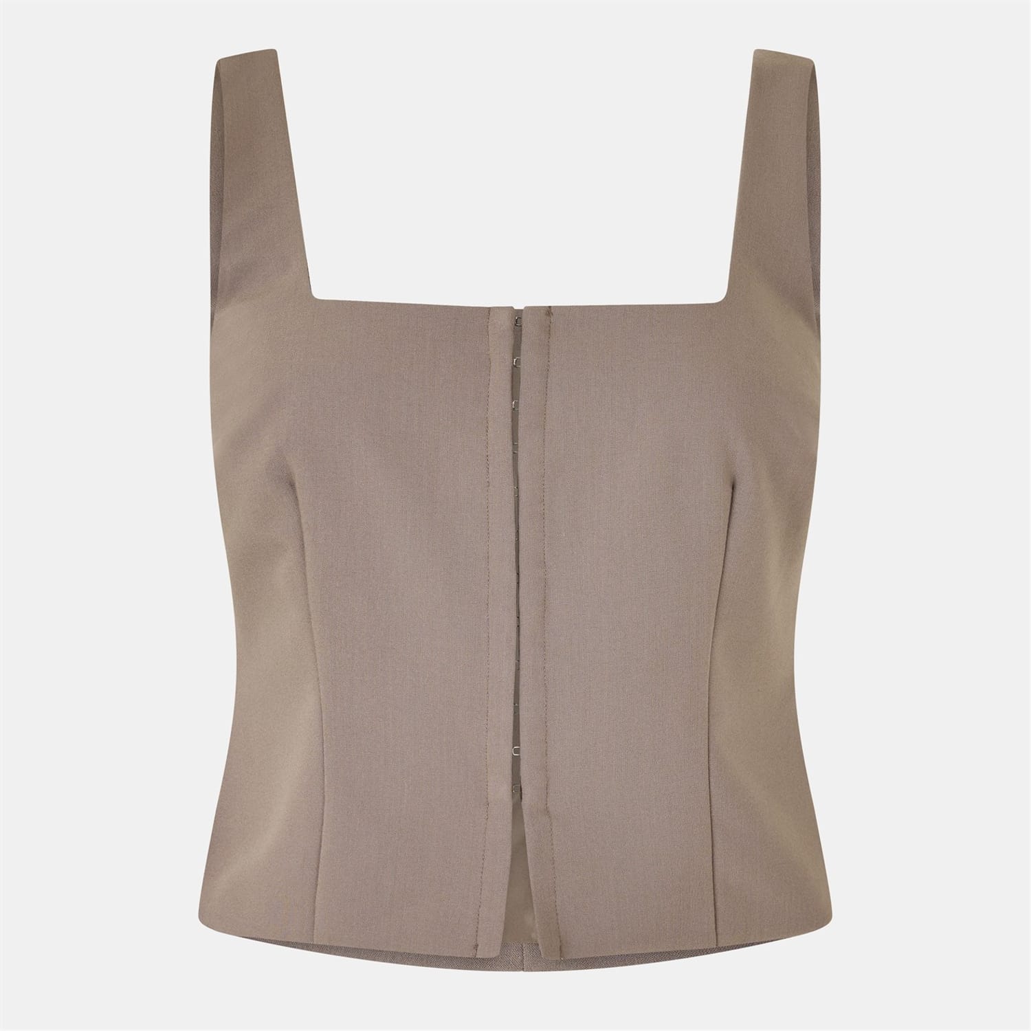 This Jack Wills top features a stylish stripe pattern, complemented by a solid design. The sleeveless style and square neckline add a modern touch, while the hook and eye closure ensures a secure fit. Crafted in a slim fit, this top offers a sleek silhouette, perfect for a contemporary wardrobe. -