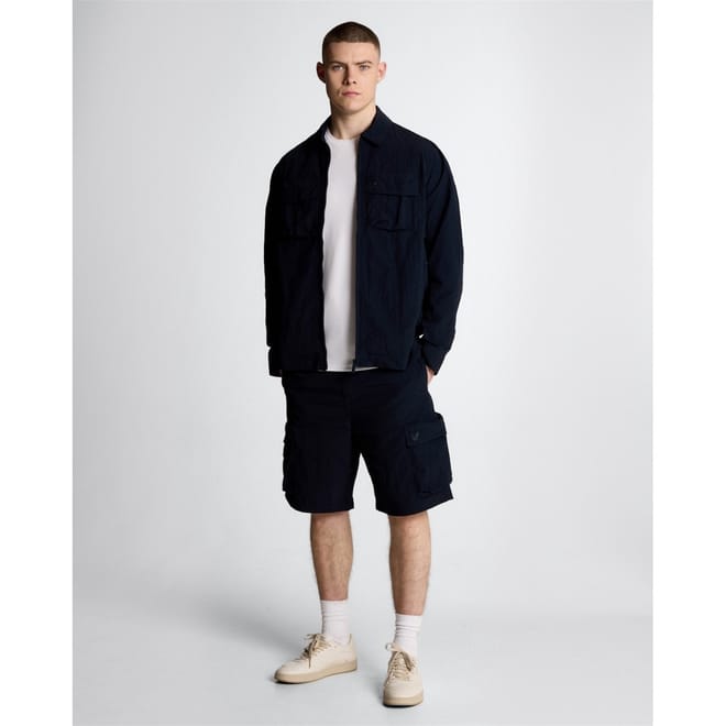 Discover the Lyle & Scott cargo shorts, a staple in casual collections. These solid shorts feature a button and zip fly closure, offering practicality with utility pockets and a logo embellishment. Perfect for those seeking a blend of style and functionality. -