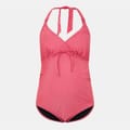 Discover the Mamalicious one-piece swimwear, designed with a sophisticated high neck style. This elegant piece features a convenient tie closure, ensuring a secure and comfortable fit. Perfect for those seeking a blend of style and functionality in their swimwear collection. -