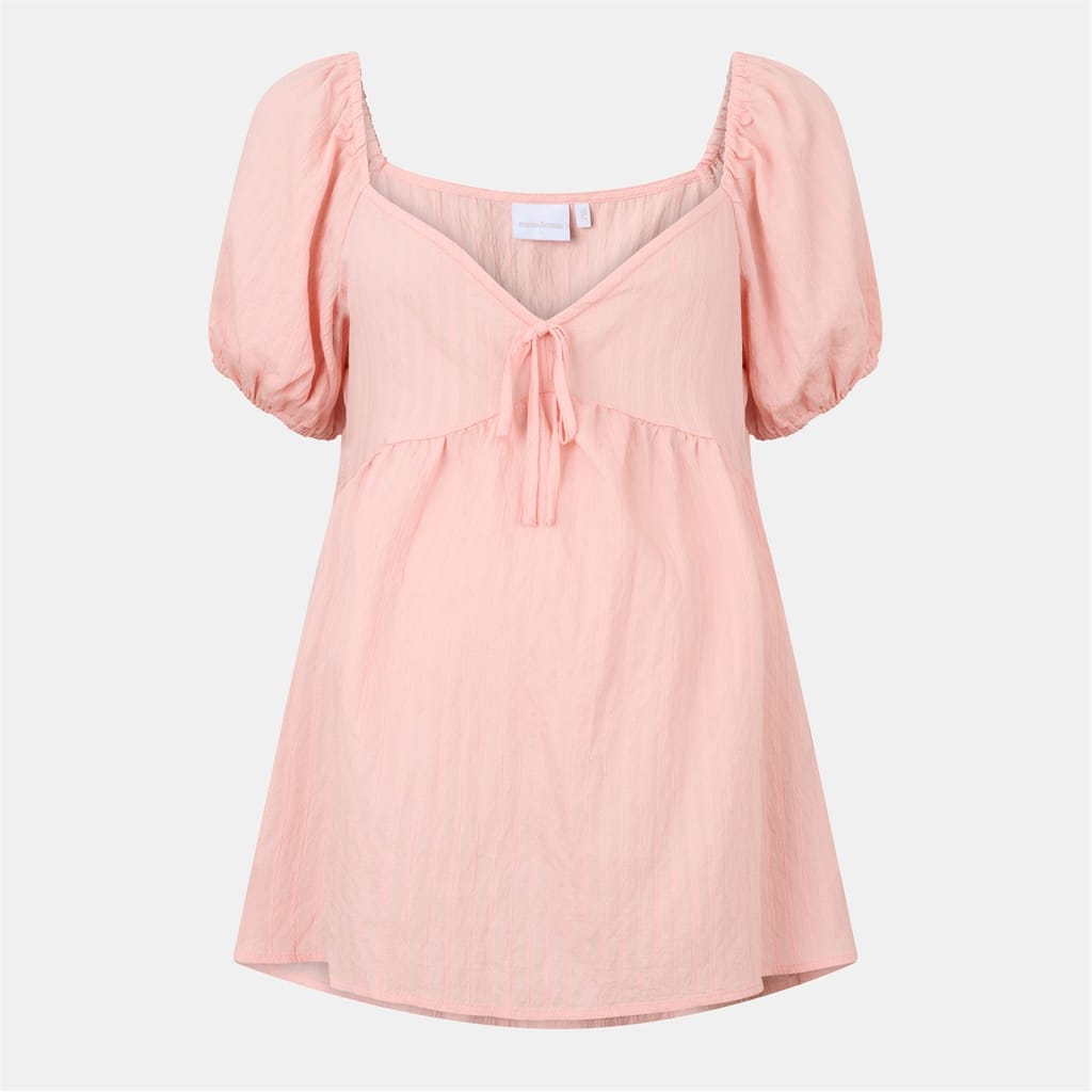 Discover the Mamalicious top, featuring a square neck and puff sleeves for a stylish touch. This solid-coloured piece offers a relaxed fit, ensuring comfort and ease. The tie closure adds a unique element to the design, making it a versatile addition to your wardrobe. -