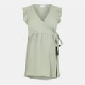 This Mamalicious top is a perfect addition to your casual collection. Featuring a relaxed fit, it offers a comfortable wear with its long sleeves and ruffle detailing. The solid pattern and V-neck design add a touch of elegance, while the tie closure provides a stylish finish. Ideal for those seeking a blend of comfort and style. -