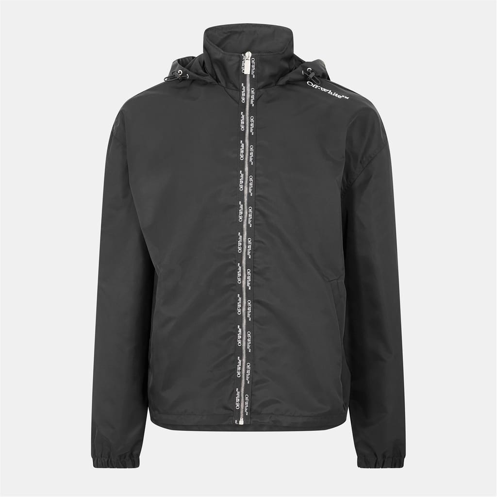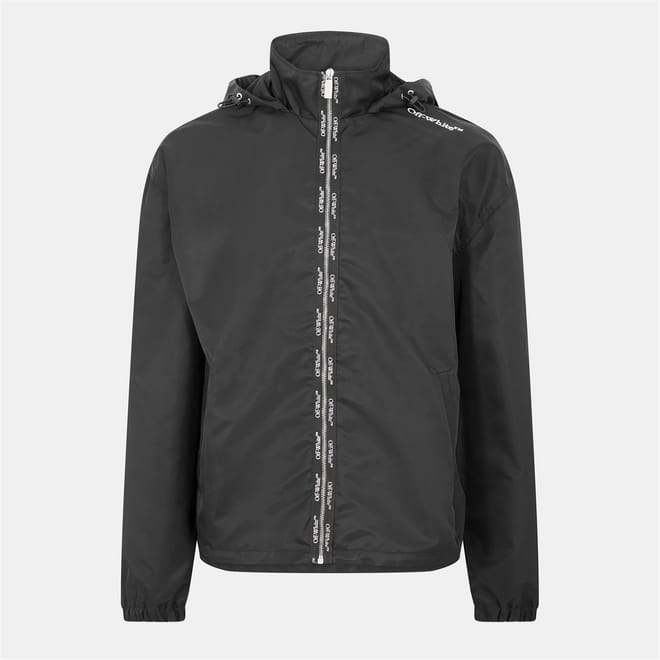 Off-White's Book Windbreaker jacket pairs minimalist aesthetics with technical performance. The structured shape features characteristic brand detailing while providing essential weather protection with a contemporary edge.