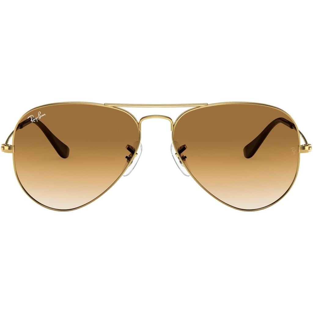 Ray-Ban sunglasses offer a classic aviator style with a full rim design. Crafted from durable metal, these sunglasses feature a double bridge for added support. The lenses incorporate UV 400 technology, ensuring optimal protection from harmful rays. A gradient pattern adds a touch of sophistication, while the iconic logo embellishment completes the timeless look. -
