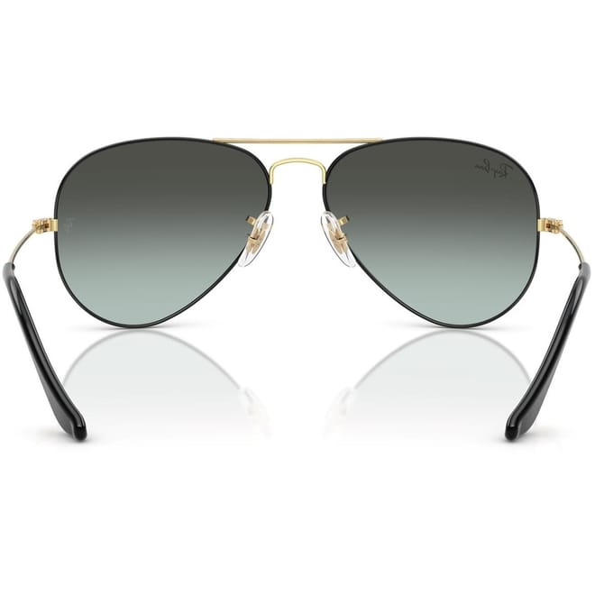 Ray-Ban sunglasses from the Classics and Fashion collections feature the iconic aviator frame style. Crafted with a combination of metal and plastic, these full-rim sunglasses offer a double bridge for added support. The design is completed with the signature logo embellishment, making them a timeless choice for eyewear enthusiasts. -