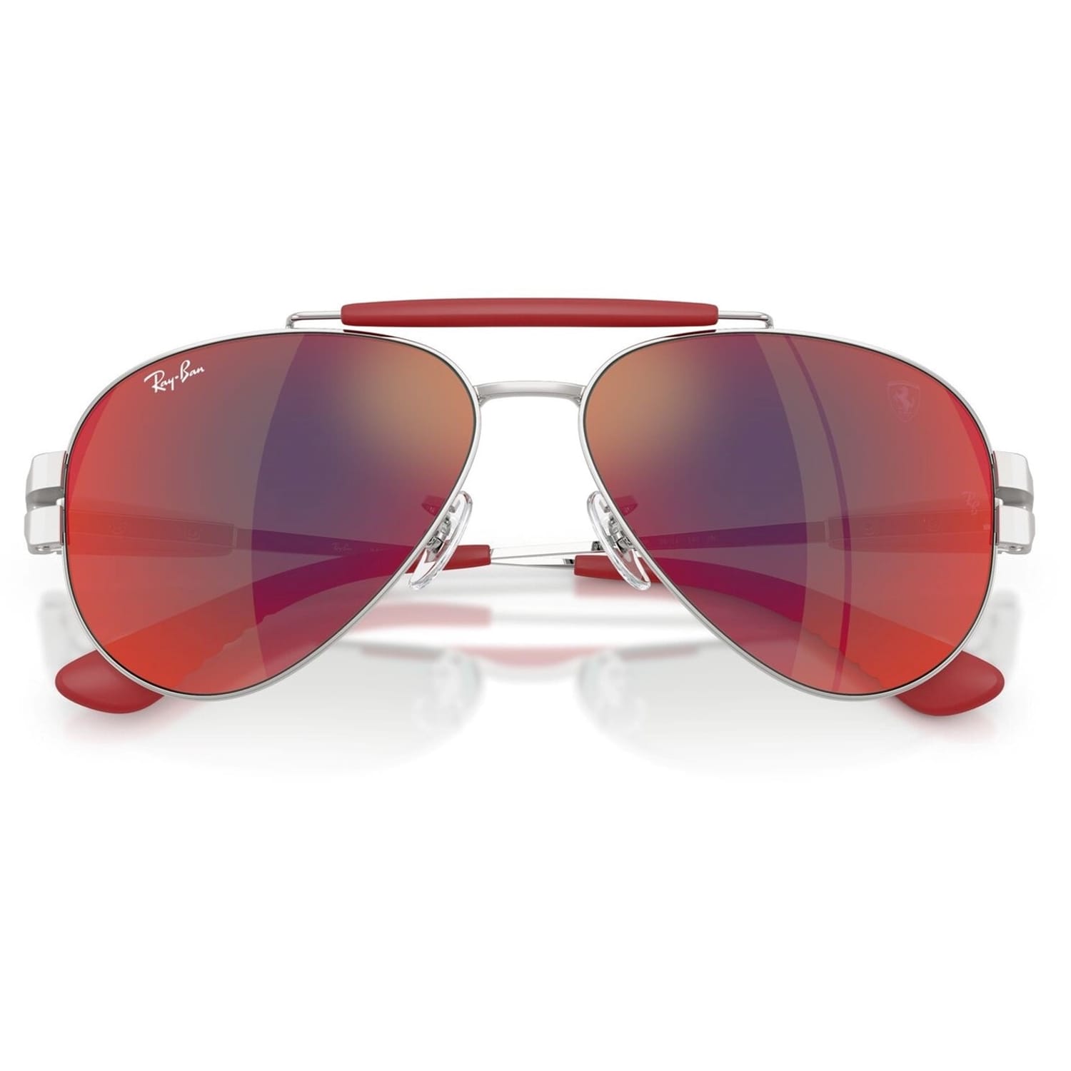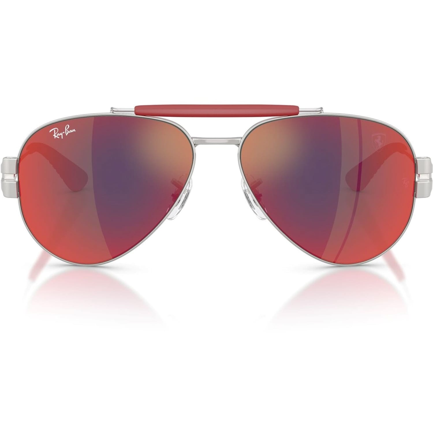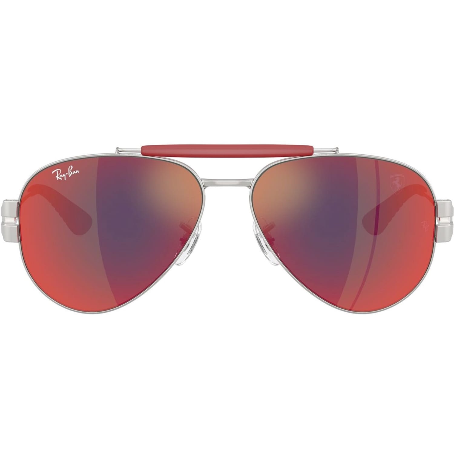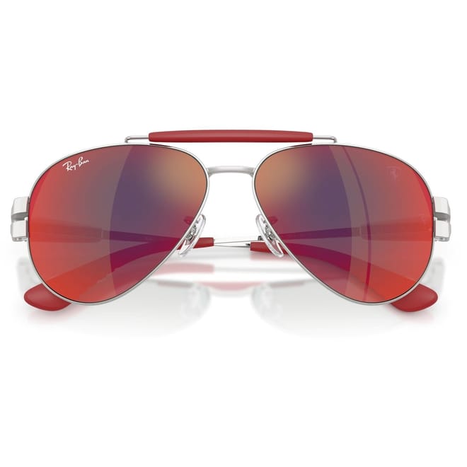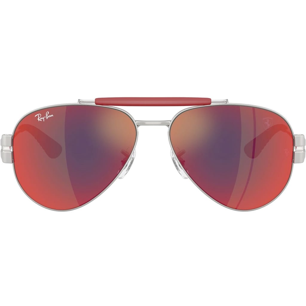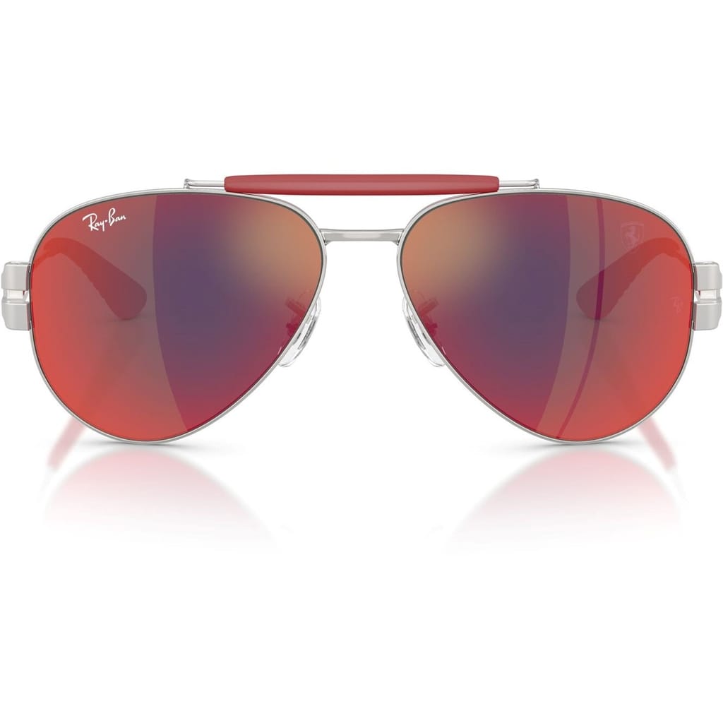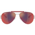 Ray-Ban sunglasses offer a classic aviator design with a full rim style, crafted from durable metal. Featuring a double bridge for added support, these sunglasses provide mirrored tint lenses with 100% UV protection. The iconic logo embellishment adds a touch of authenticity to this timeless eyewear choice. -