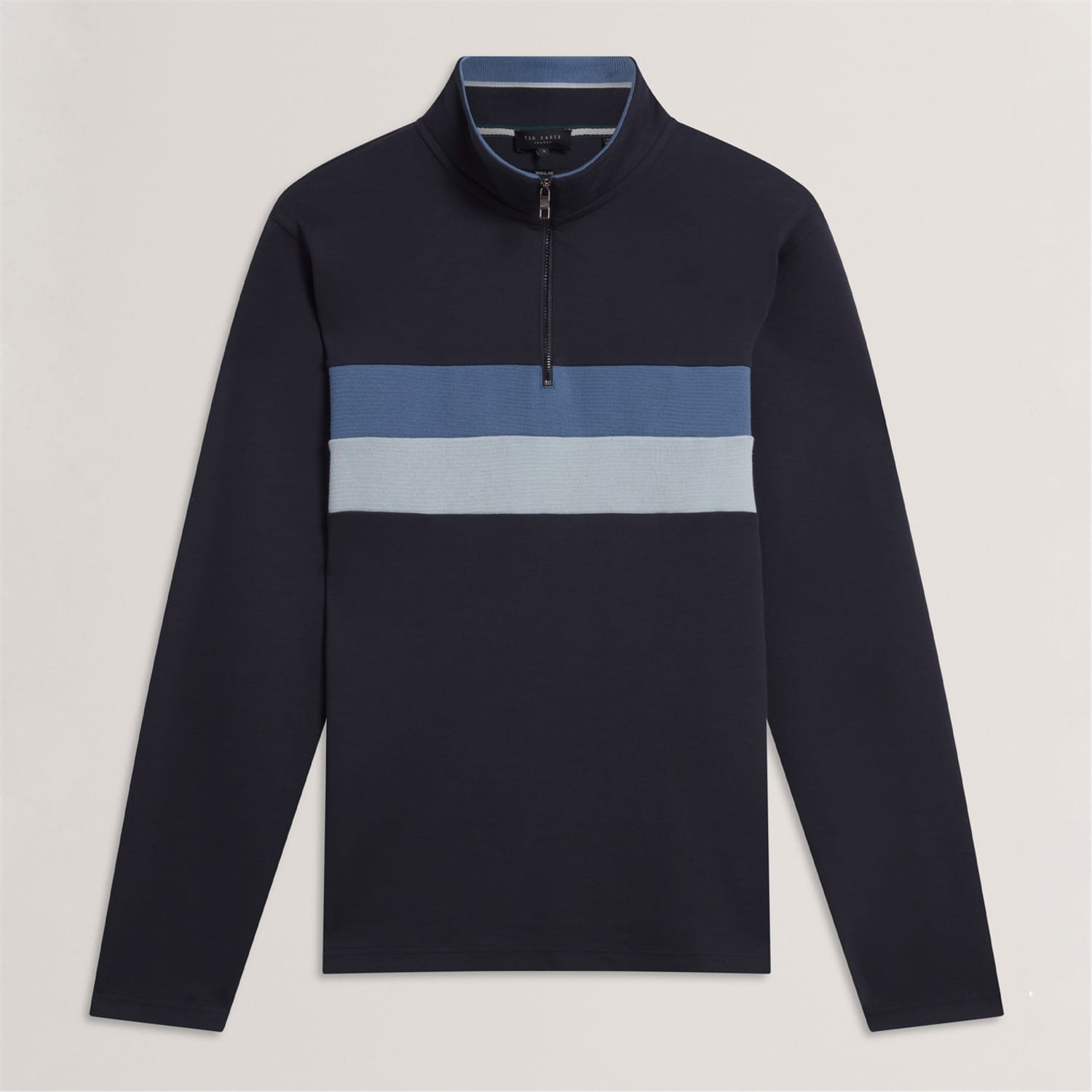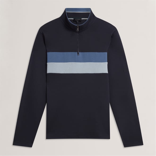 This Ted Baker top features a stylish zip neck and a half zipper closure, offering a modern twist to your wardrobe. The long sleeves with ribbed cuffs ensure a comfortable fit, while the regular fit design provides ease of movement. The colour block pattern adds a touch of contemporary flair, making it a versatile addition to any collection. -