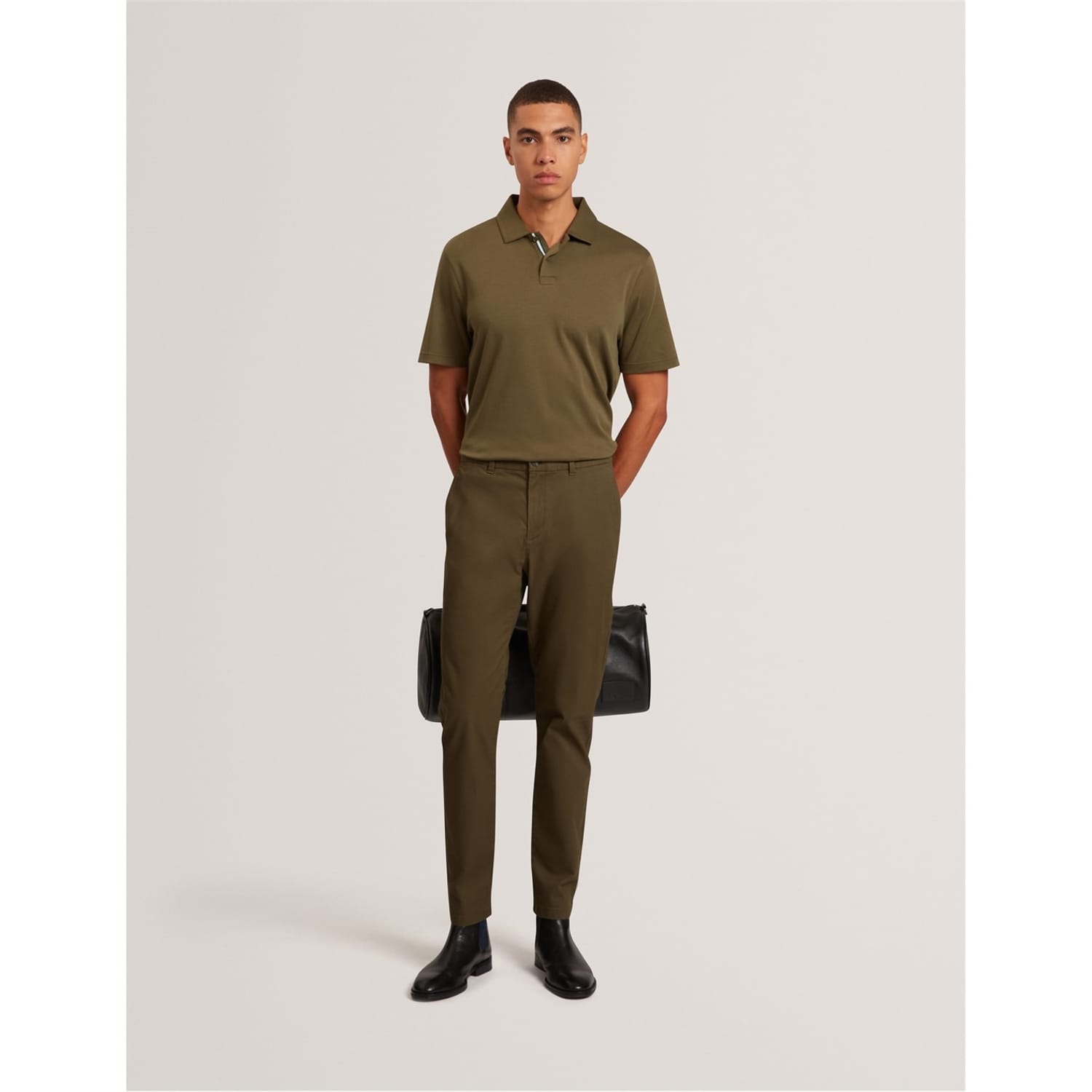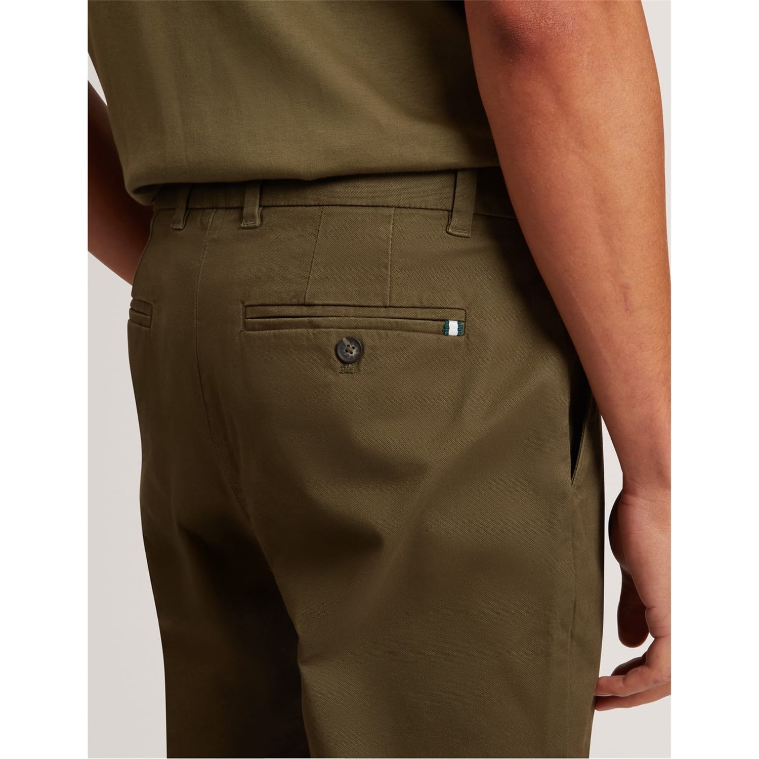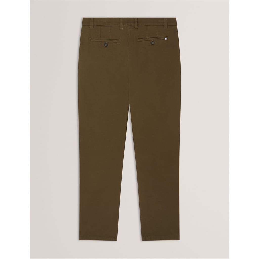 Ted Baker chinos are a versatile addition to your wardrobe, perfect for both casual and workwear collections. These trousers feature a zip fly closure with a front button and belt loops for a secure fit. Designed with welt, flat front, side, and single back pockets, they offer ample storage. The slim fit ensures a modern silhouette, making them a stylish choice for any occasion. -