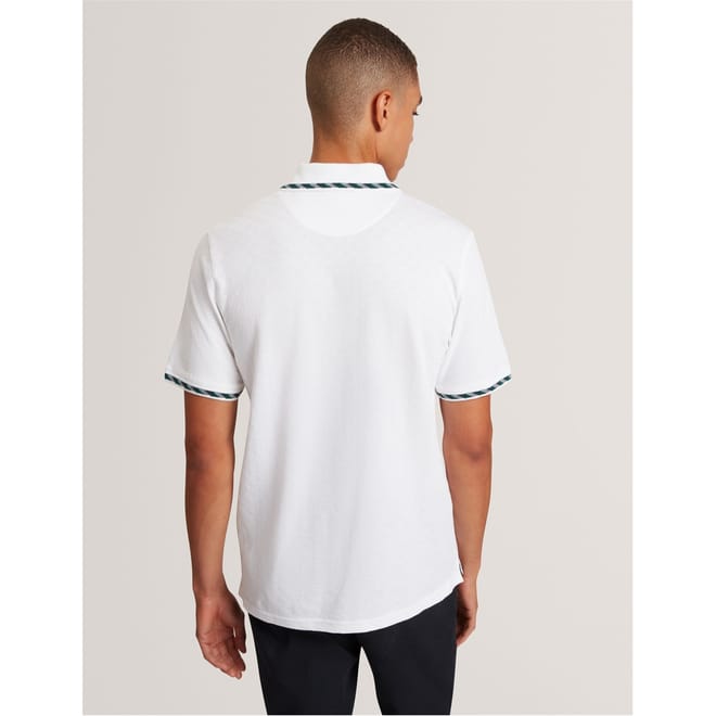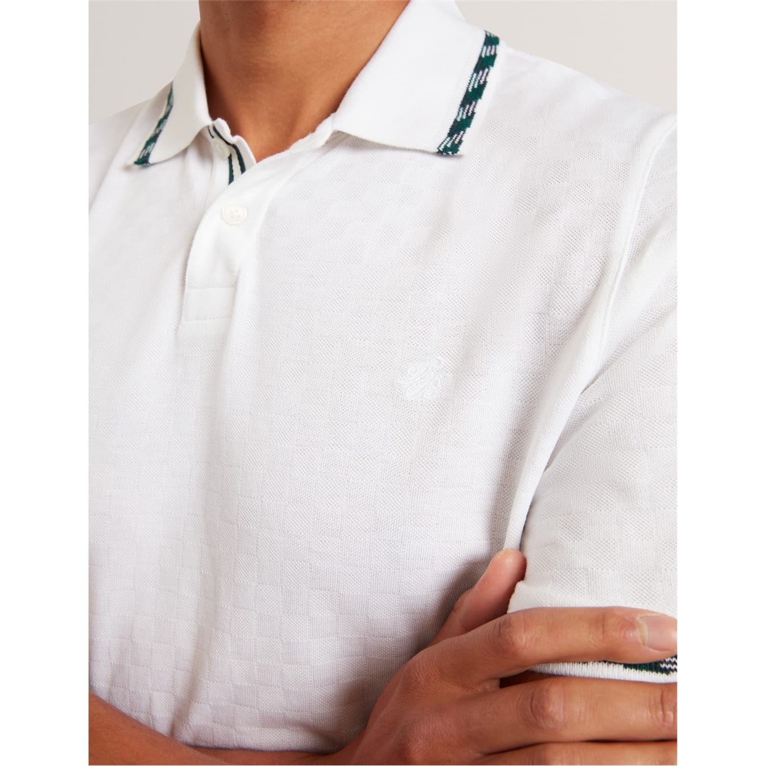 Ted Baker's Jacquard Short-Sleeve Polo Shirt updates casual style with textured jacquard fabric and fine detailing for a designer summer essential.
